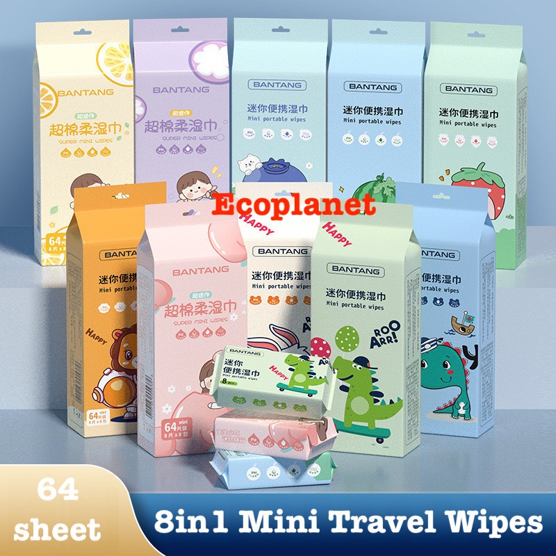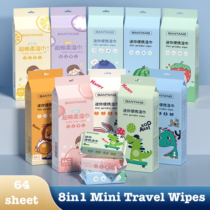 8in1 Set 64sheet 90sheet 10sheet Baby Wipes Mini Multipurpose wipe Easy to carry Outdoor Travel Size