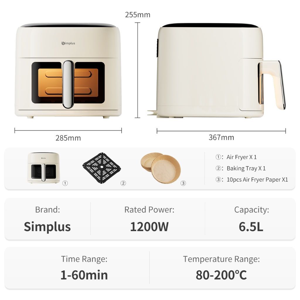 Simplus Visual Air Fryer 6.5L Large Capacity with Touch Screen KQZG018