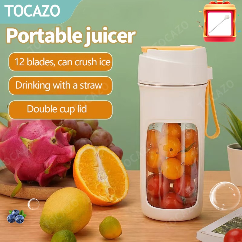 【Free Gift】450ML Fruit Juicer Portable Electric Blender USB Charging 12 Blades Juicing Cup