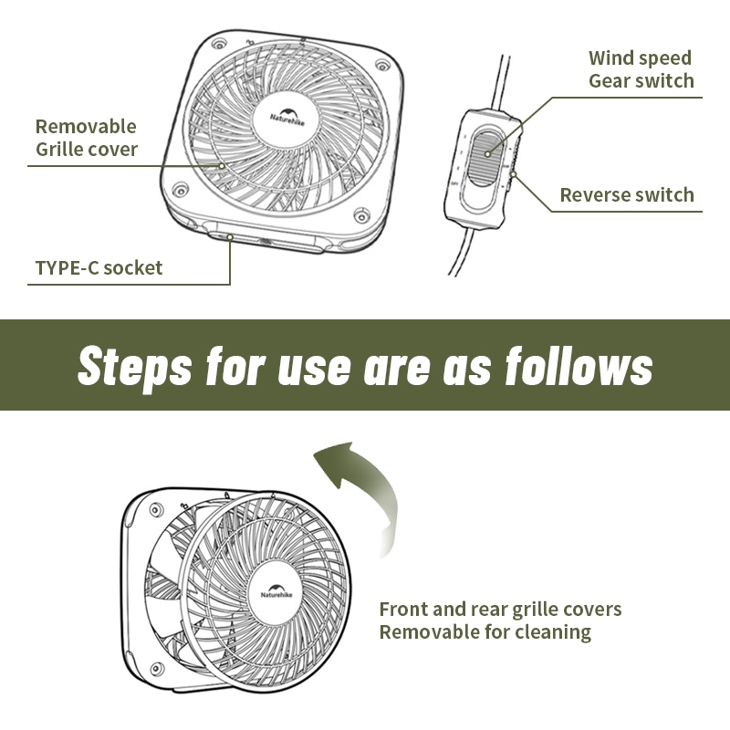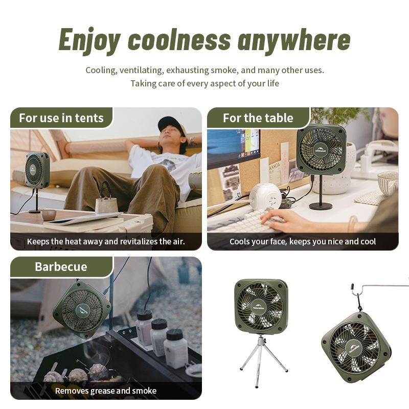 Naturehike Camping Fan Tent Circulation Two-way Blowing Rechargeable Circulator Desktop Portable 3 Speeds Electric Fans Office Desk BBQ Ceiling Fan With Tripod