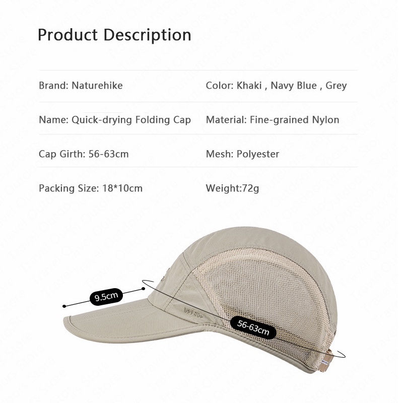 Naturehike Folding Fishing Cap Baseball Cap UPF50+ UV Proof Outdoor Breathable Camping Hiking Hat Quick Drying Trekking Hat Sun Hat Men Women
