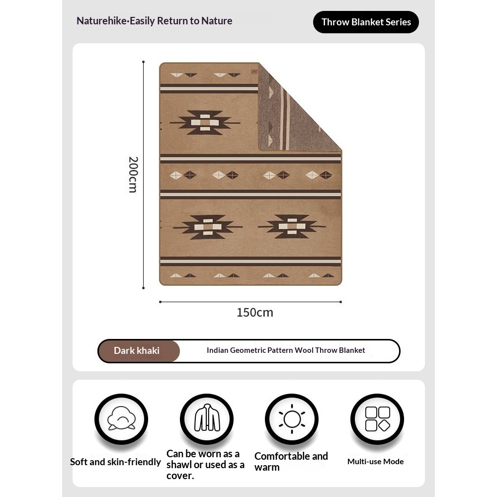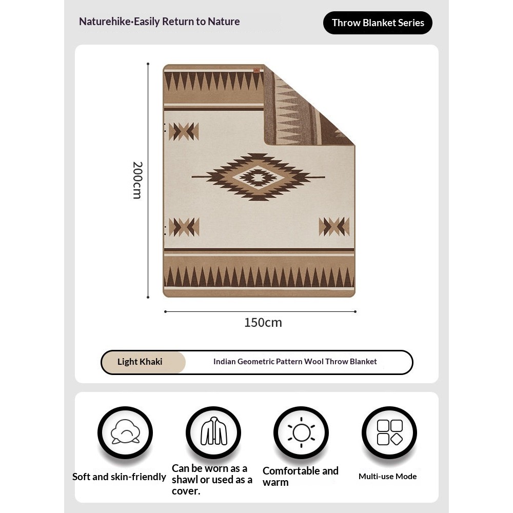 Naturehike Indian Geometric Wool Blanket Outdoor Winter Portable Multifunction Super Wide Carpet