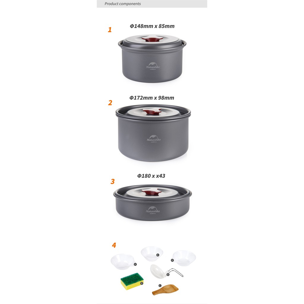 Naturehike Outdoor Camping Hiking Cookware Set Picnic Cooking Pot Tableware Cookware Ultralight and Portable