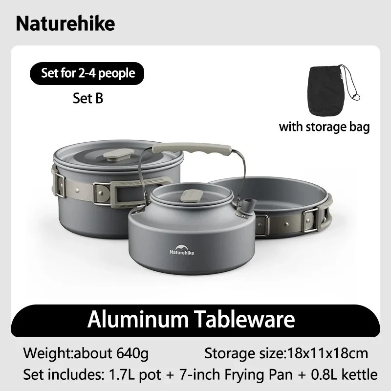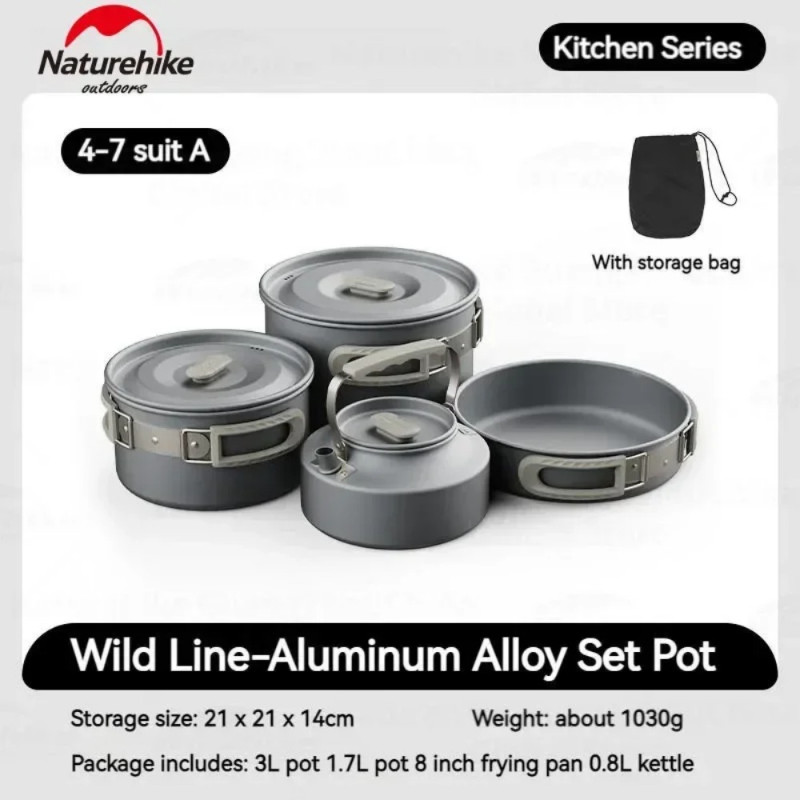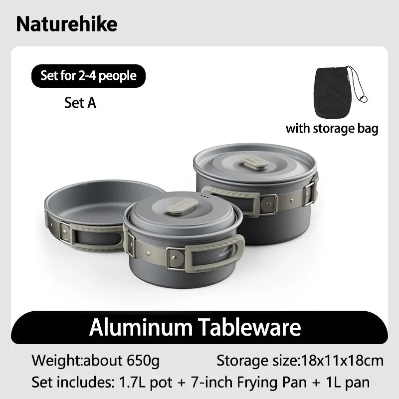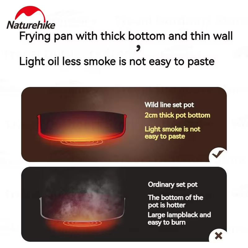 Naturehike Outdoor Pot Set Camping Cooking Equipment Portable Stainless Steel Frying Pan Hanging Pot