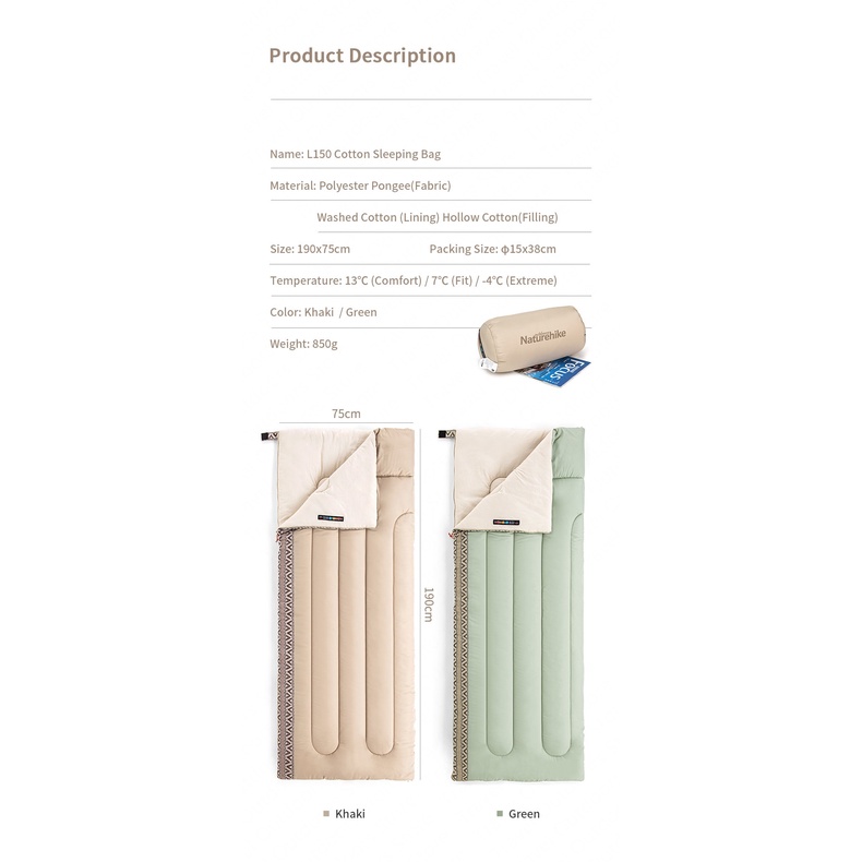 Naturehike Sleeping Bag Soft Washable Envelope Cotton Ultralight Sleeping Bag Camping Warmth Outdoor Portable Sleeping Bag
