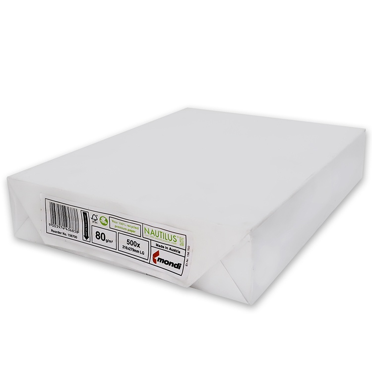 Nautilus Superwhite 100% Recycled Bond Paper 80gsm 8.5x11 size 500's per ream