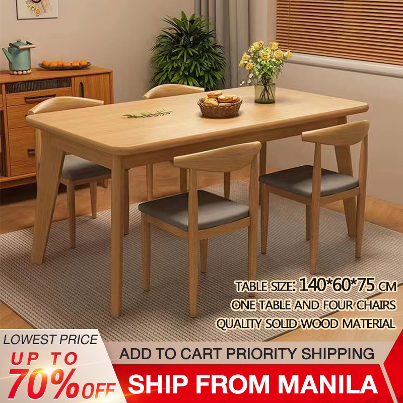 Navia log table and chairs solid wood dining table home small modern minimalist restaurant