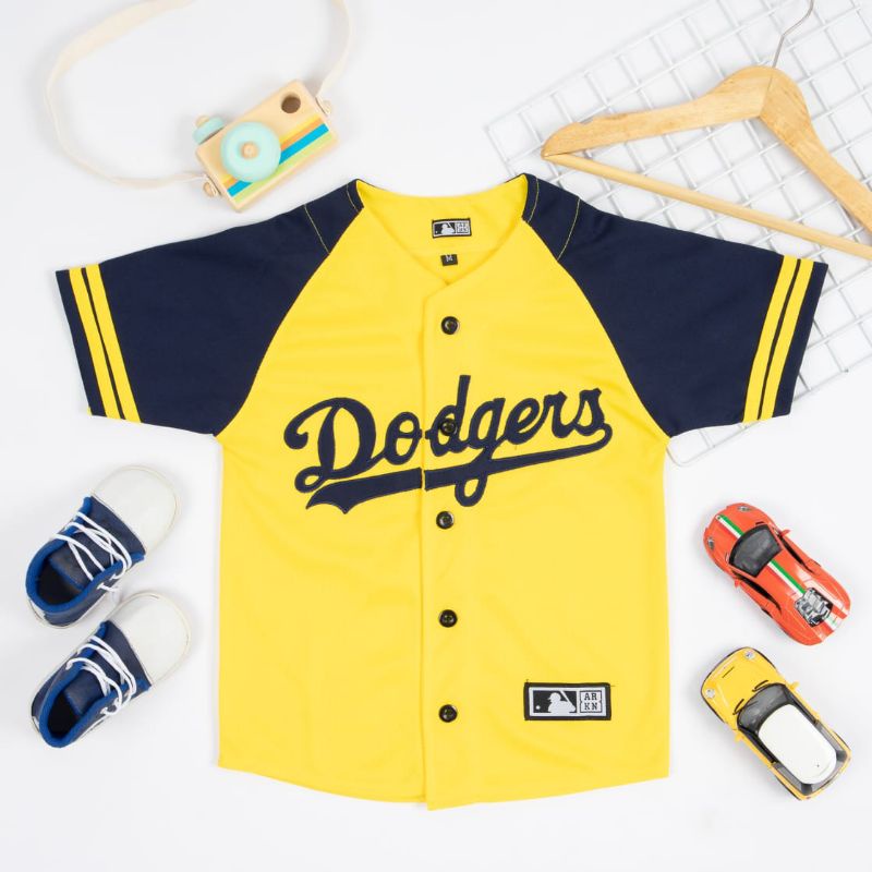 Domgers children's yellow baseball Jersey with navy sleeves