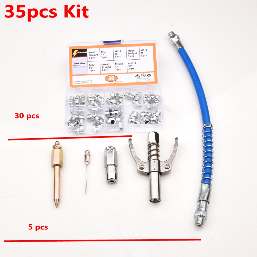Needle Nose Grease Gun Head Heavy-Duty Grease Gun Coupler Kit Hige Pressure Oil Filling Tool Grease Pump Head Fittings Manual Grease Injector Nipple Locking Clamp