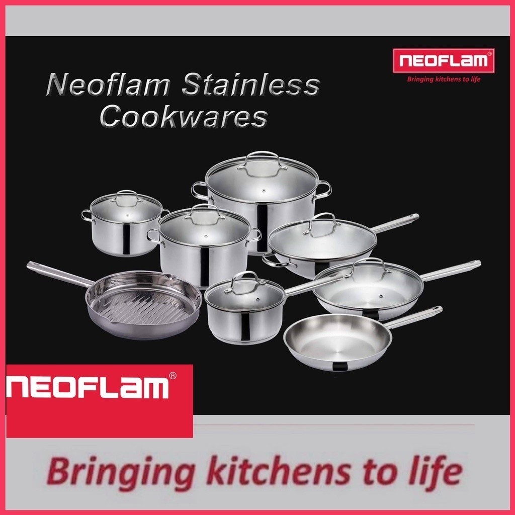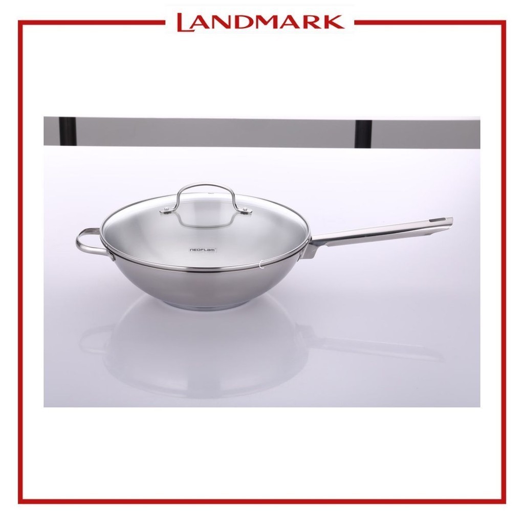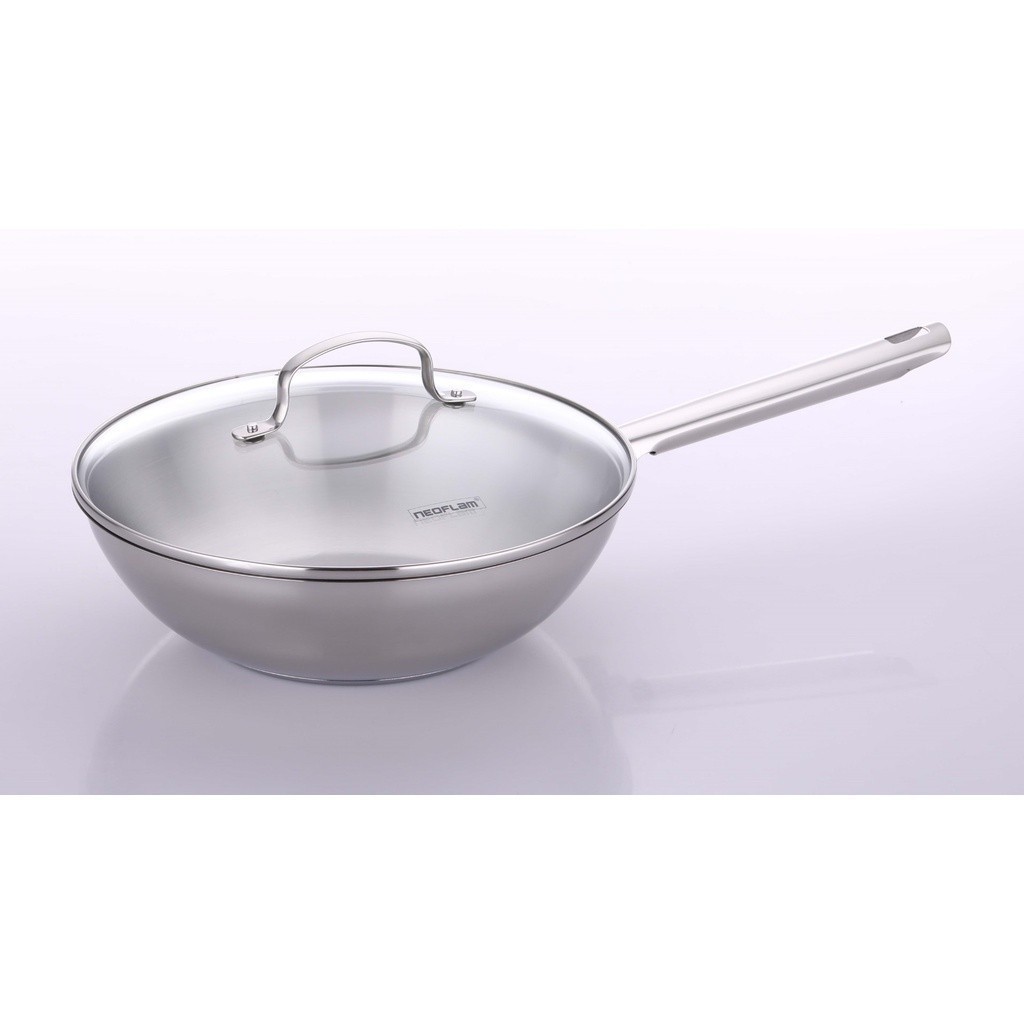 Neoflam Stainless Wok Pan 28cm with Glass Lid with Gift Box 30.3 x 11 x 30.3cm