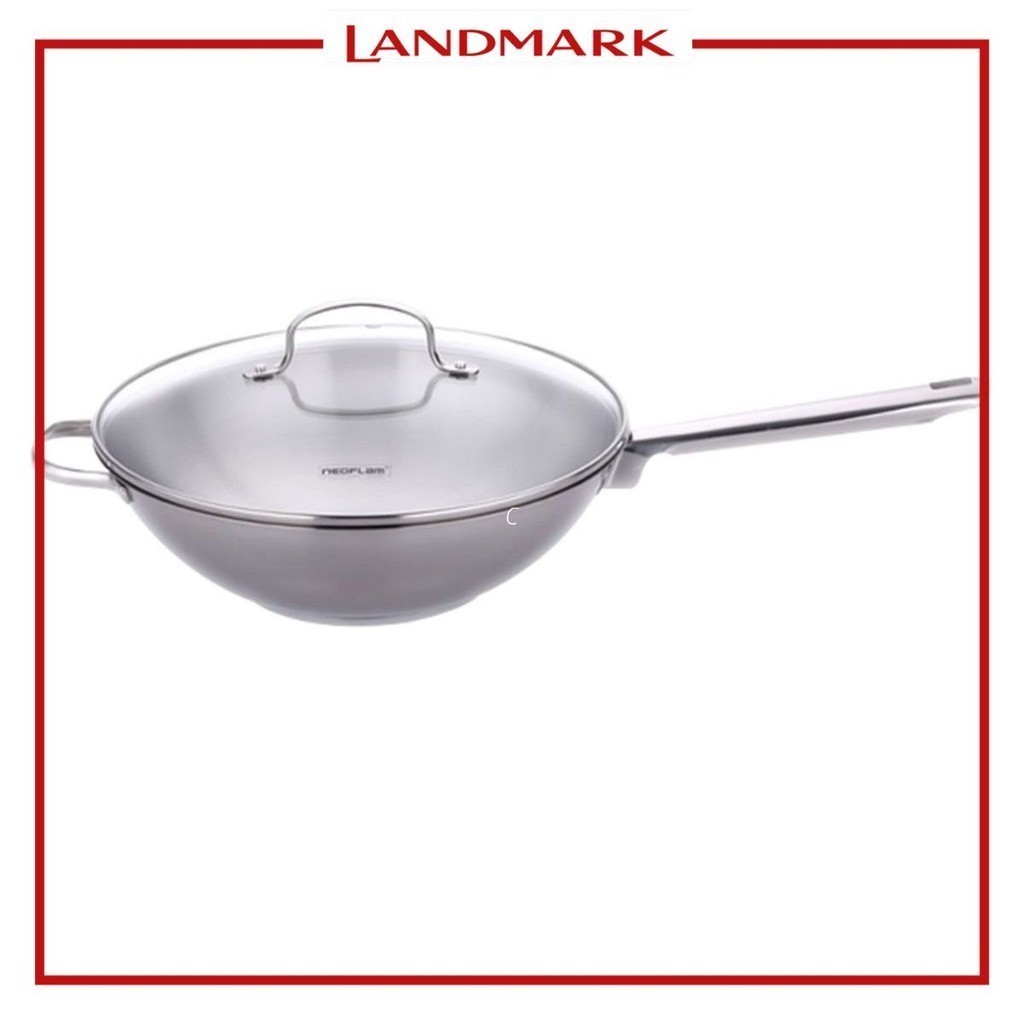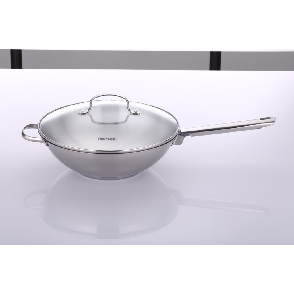 Neoflam Stainless Wok Pan 30cm with Glass Lid & Side Handle with Gift Box 32 x 12 x 32cm