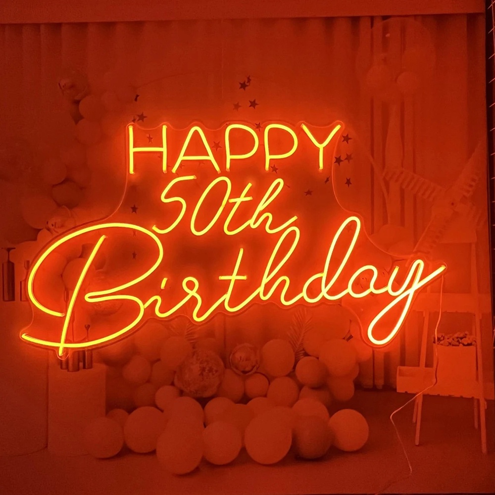 Neon Sign Happy Birthday Custom Neon Sign 50th Birthday Gift Home Decoration Party Customized Neon Sign Neon Sign Wall Decor