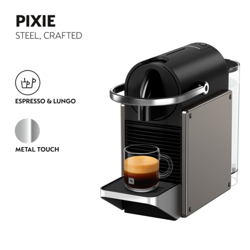 Nespresso Pixie Automatic Coffee Machine Coffee Maker with Coffee Capsules, Titan