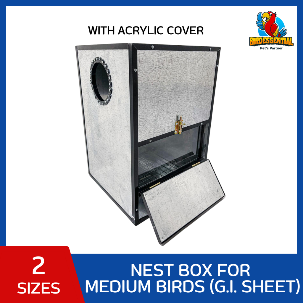 Nest box (G.I. or Aluminum sheet) with Acrylic for Medium Birds Sun Conures, Eclectus, Amazon