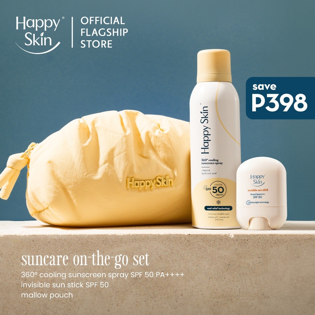 Happy Skin Suncare On-The-Go Set (Cooling Sunscreen Spray + Invisible Sun Stick + Pouch)
