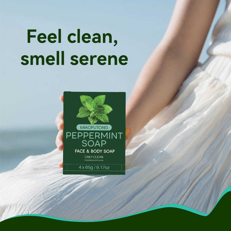 Type Peppermint Essential Oil Soap 65g * 4 Moisturizing Refreshing Deep Cleansing Handmade Soap Cleansing Bath Soap