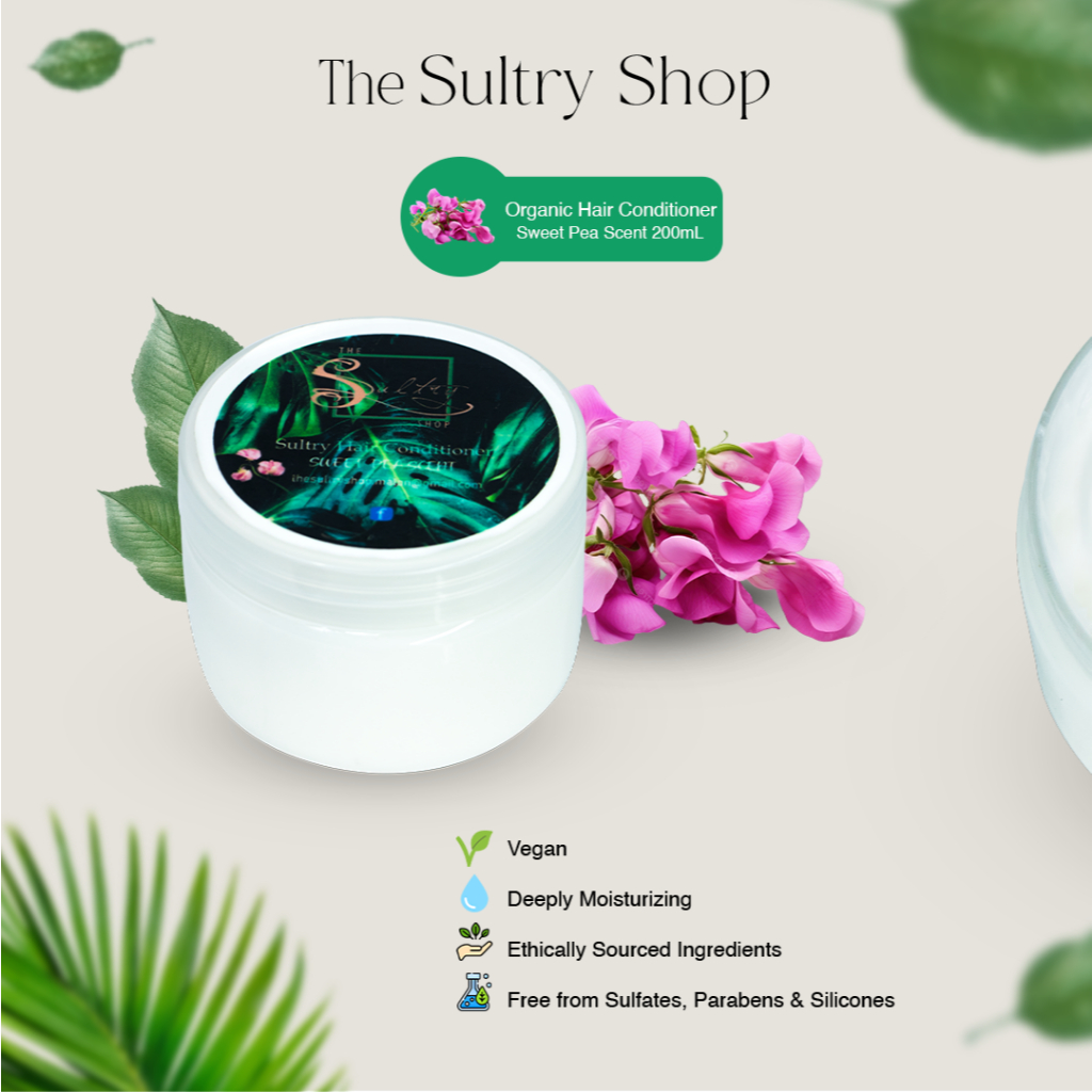 The Sultry Shop Organic Hair Conditioner Sweet Pea Scent with ALL NATURAL INGREDIENTS AND DEEP HYDR