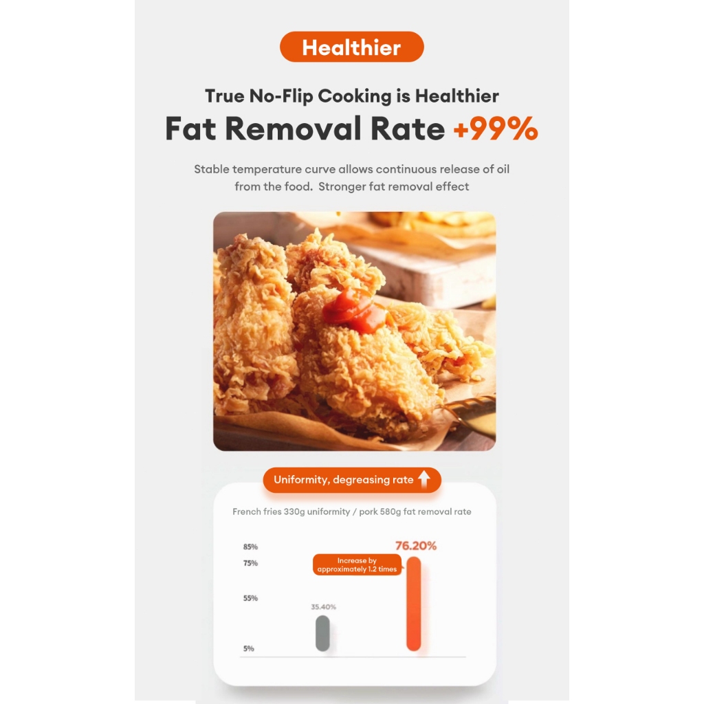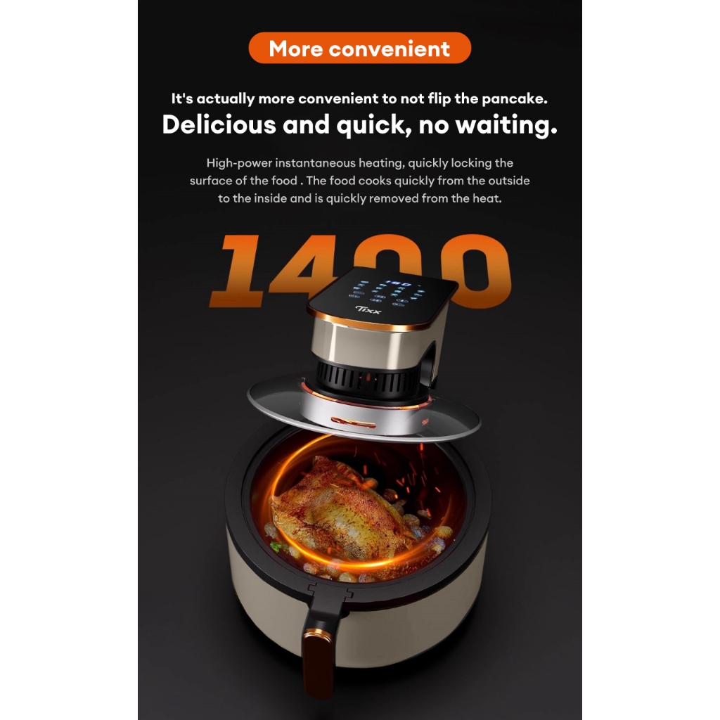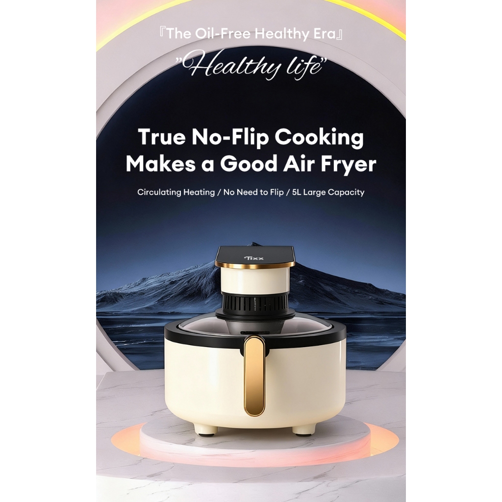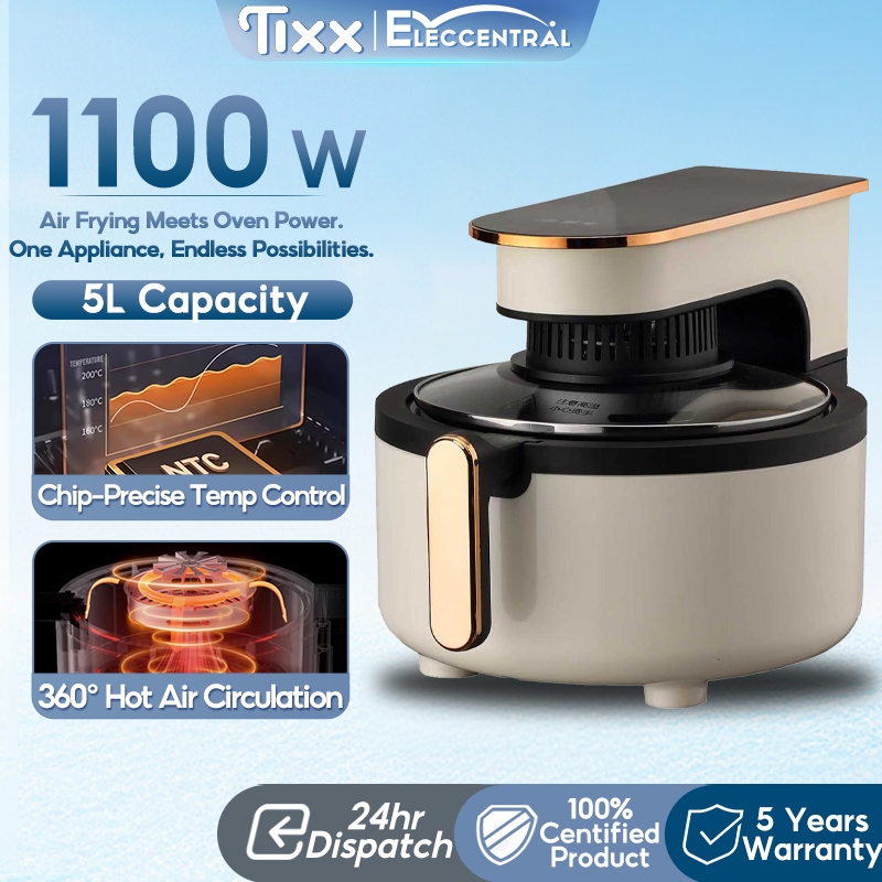 Tixx Air Fryer For Home 5L Capacity 1100W 80~200℃ Oil Free Non-Stick Surface Touch Screen Control