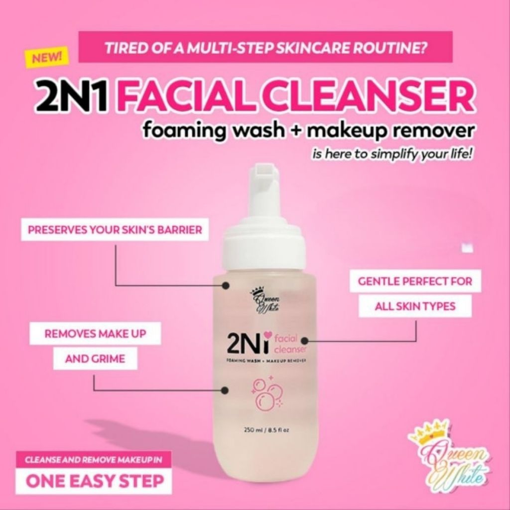 LB Queen White 2 in 1 Facial Cleanser FOAMING WASH + MAKEUP REMOVER 250ML