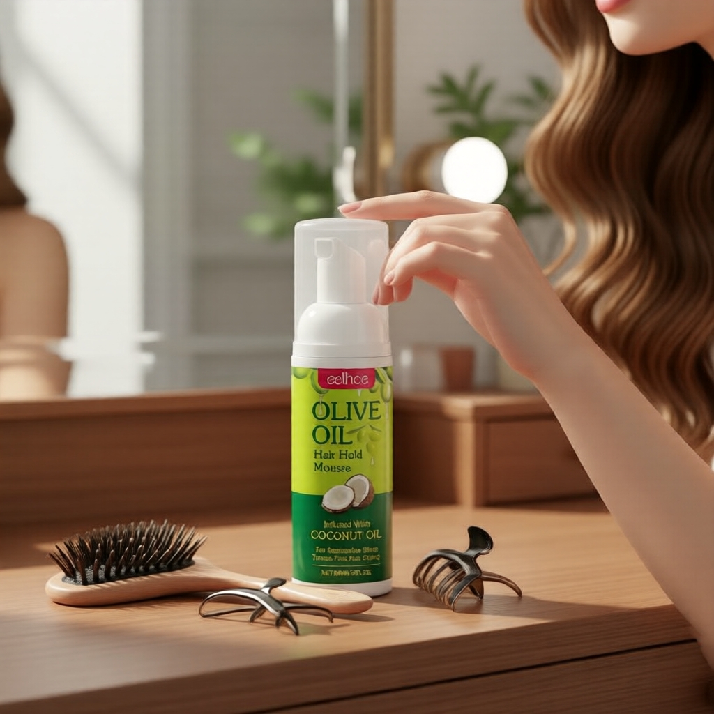 Olive & Coconut Oil Mousse For Curly Hair: Firm Hold, Anti-Frizz & Added Shine