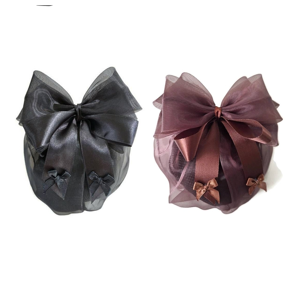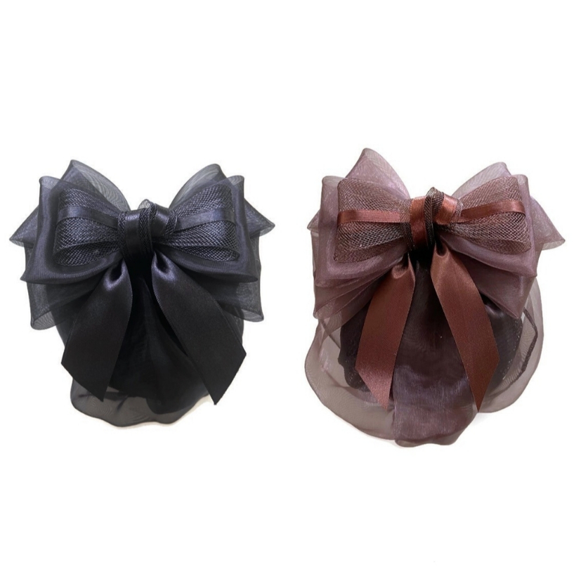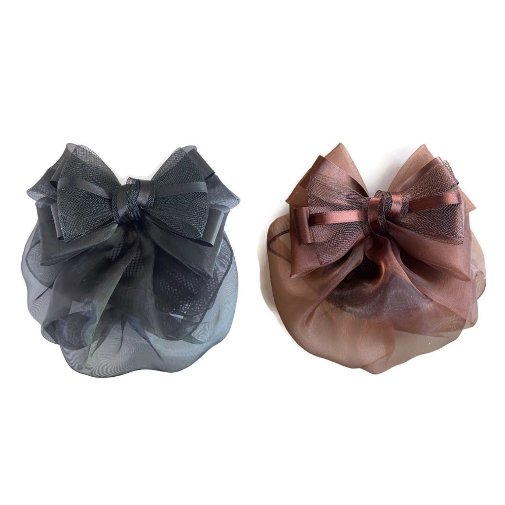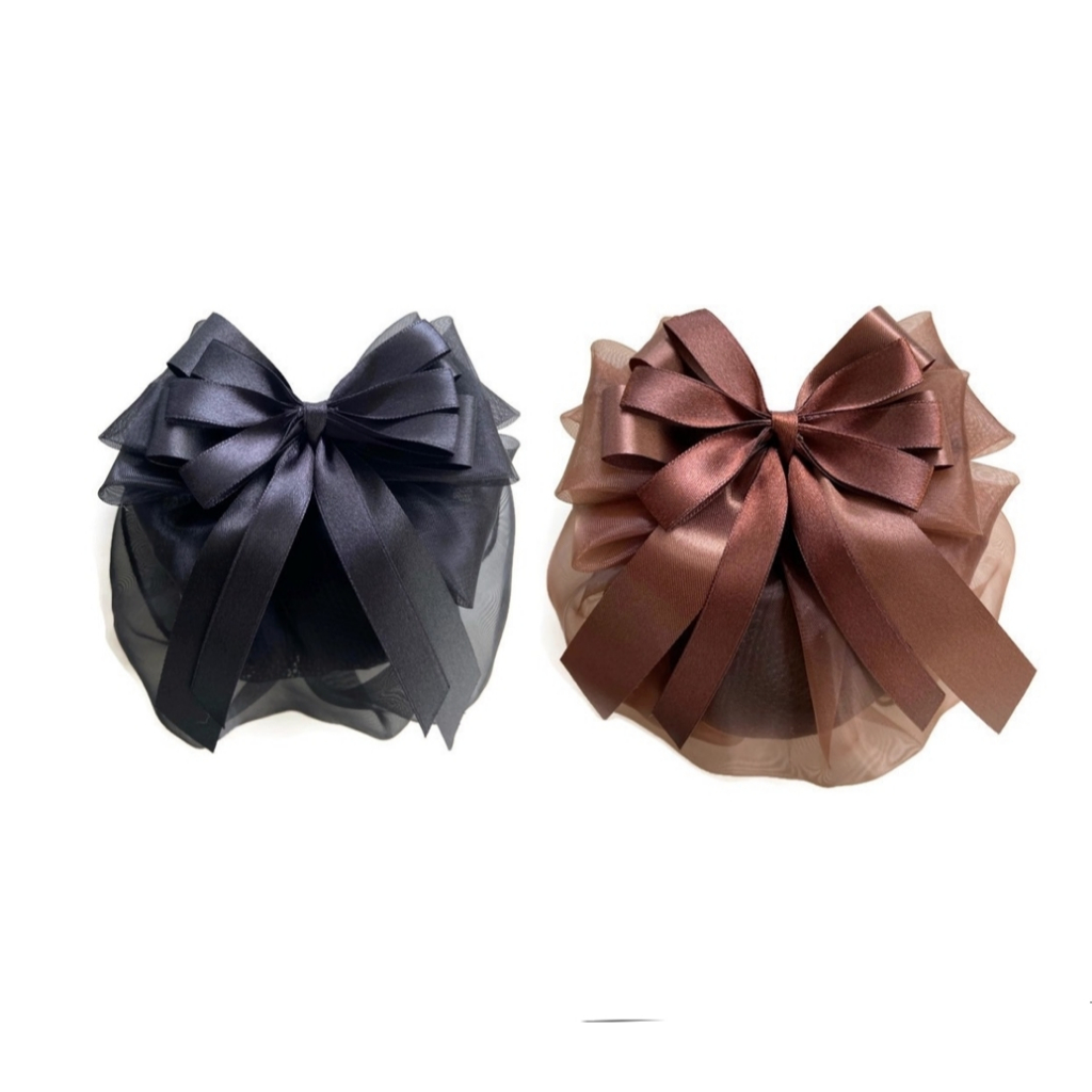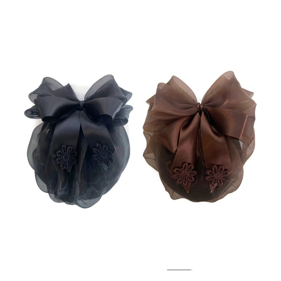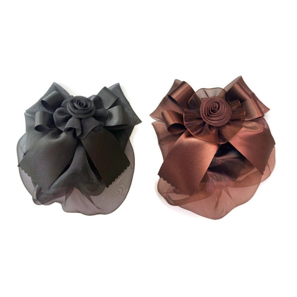 Black/Brown Hair Net Large Size 10 cm Clip Bow Polite Color Nurse Civil Servant Police