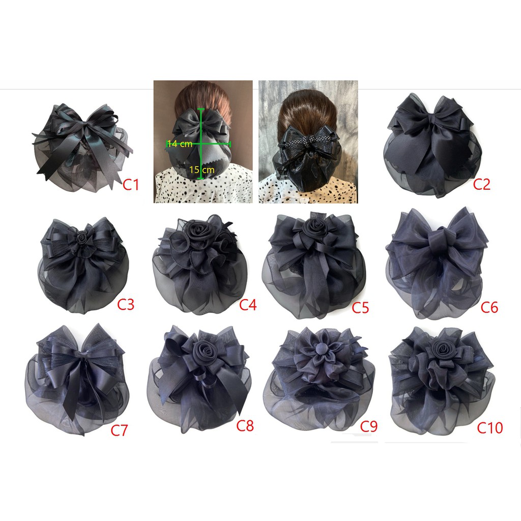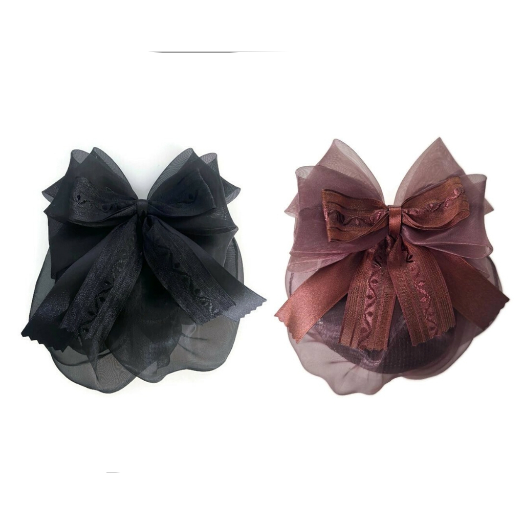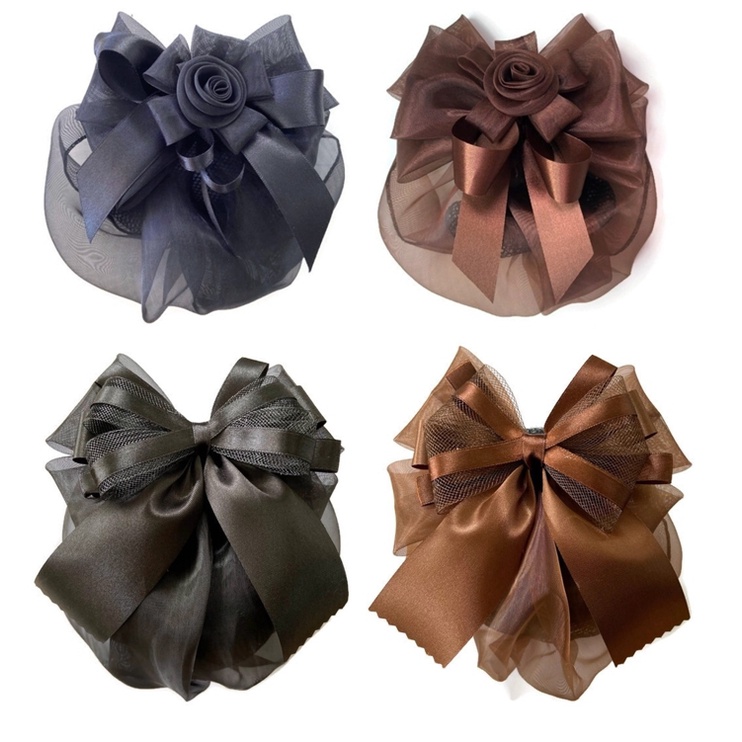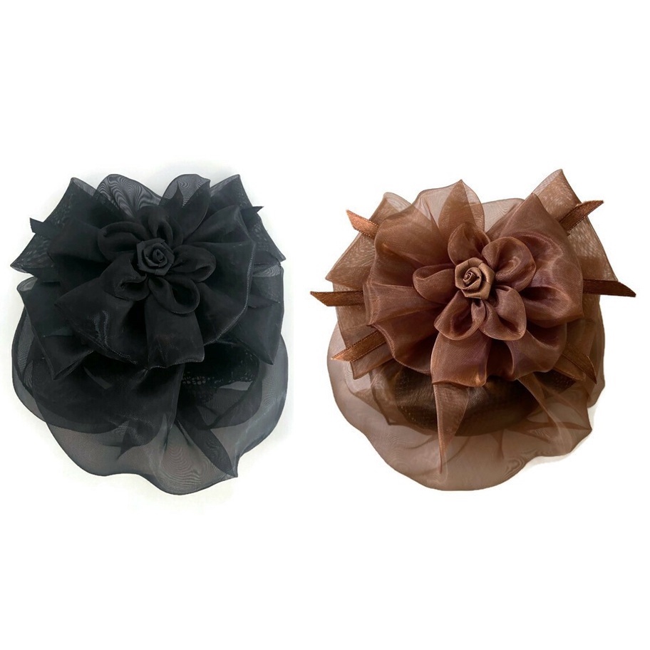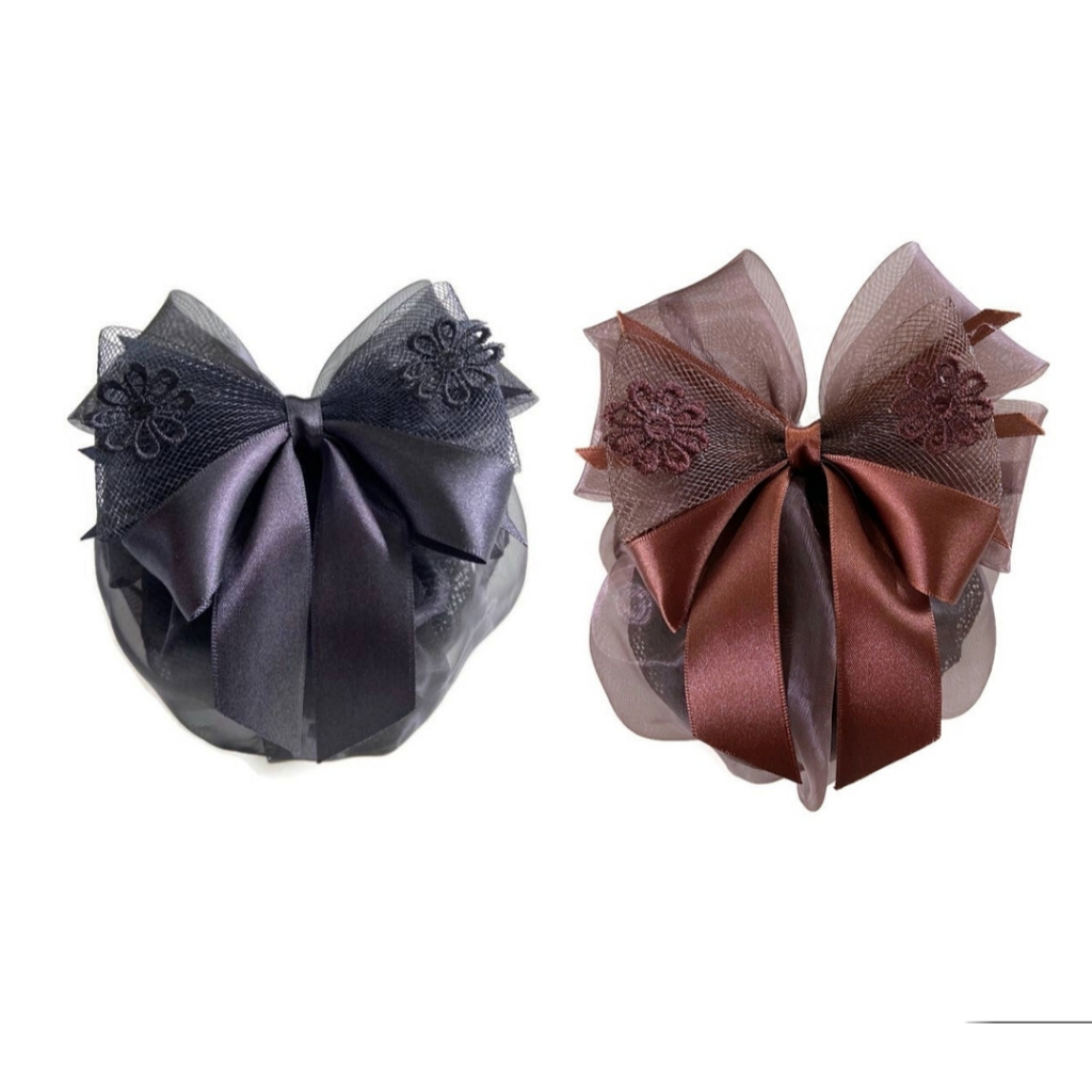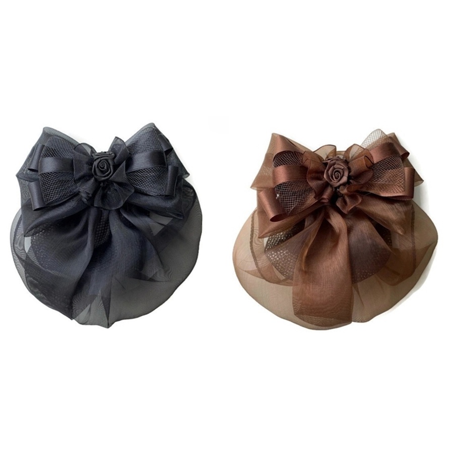 Black/Brown Hair Net Large Size 10 cm Clip Bow Polite Color Nurse Civil Servant Police