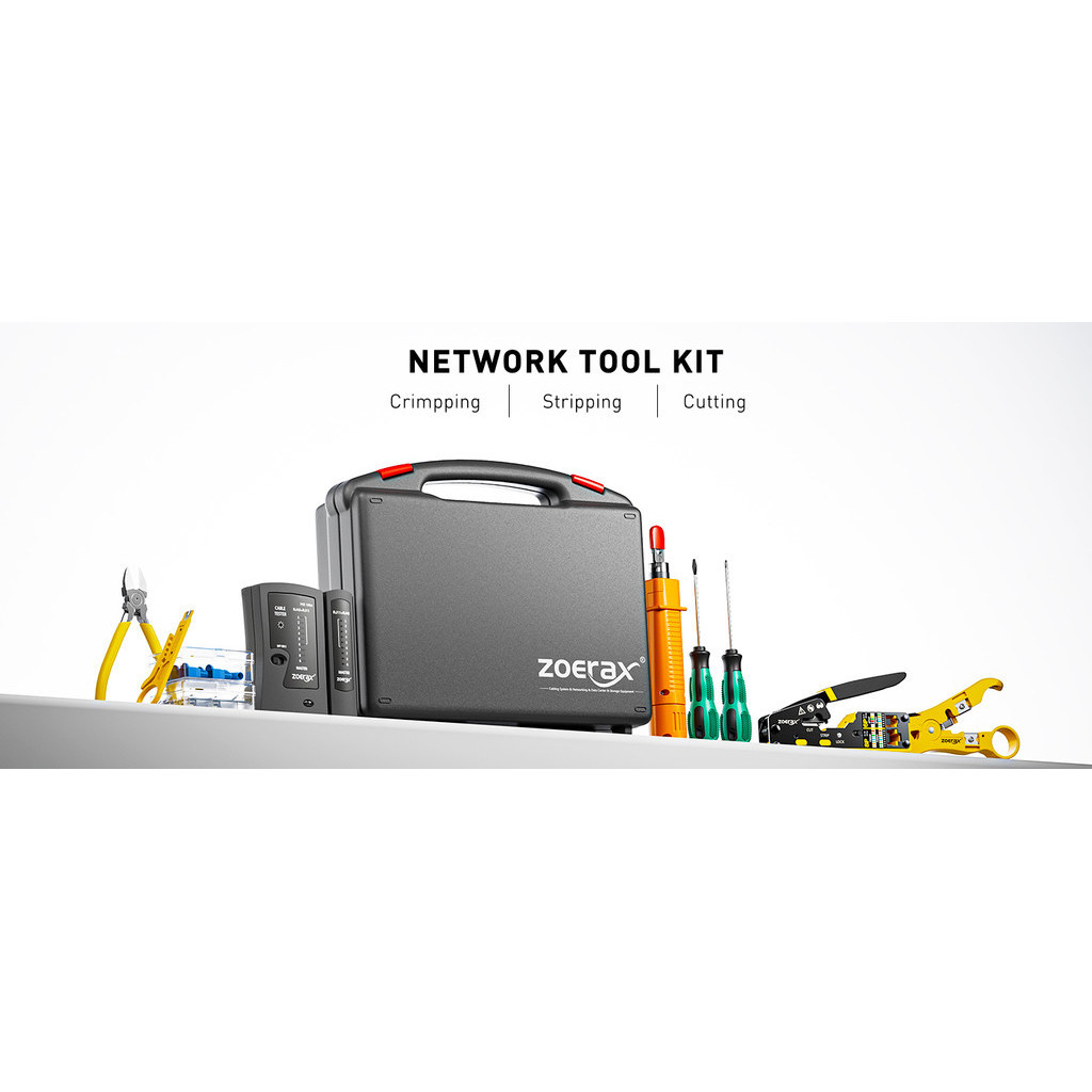 ZoeRax RJ45 Ethernet Crimping Tool Kit, Through-Hole Crimper, RJ45 Crimping Tool, Network Cable Tester, Wiring Tool, Network Wire Stripping Tool Kit Suitable for Data Center Home Networkas well as monitoring equipment