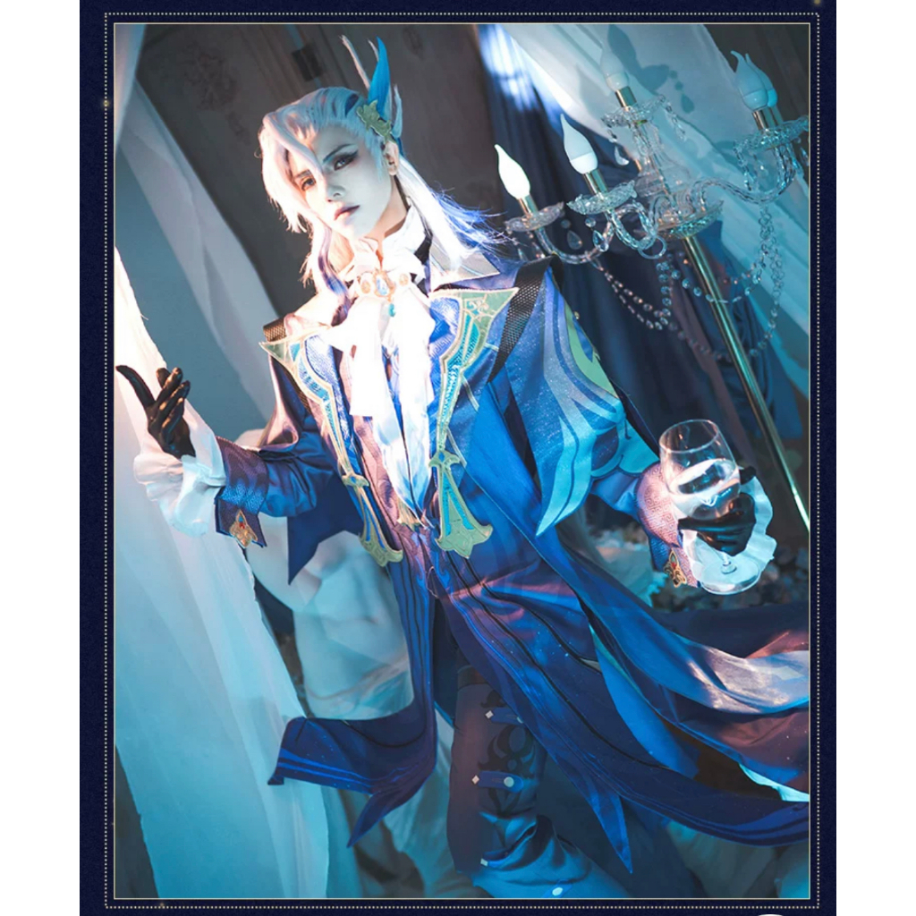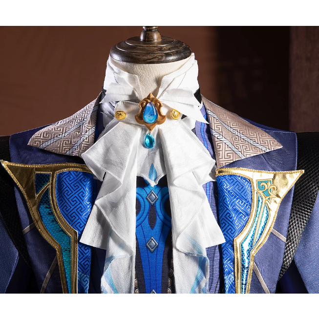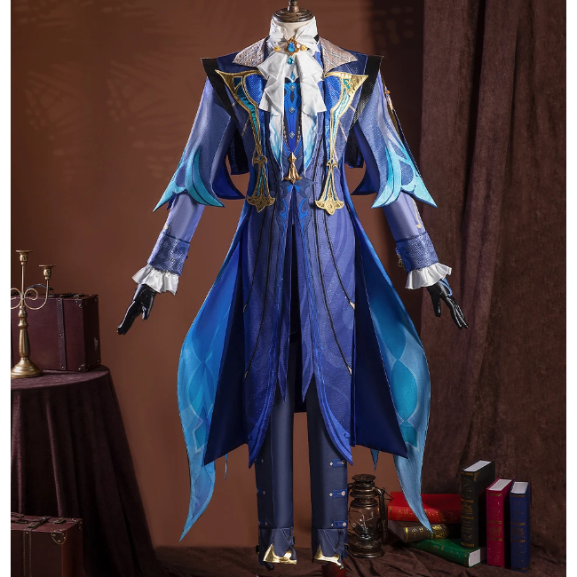 Neuvillette Cosplay Costume Wig Genshin Impact Fontaine Uniform Headwear Chief Justice Halloween Par