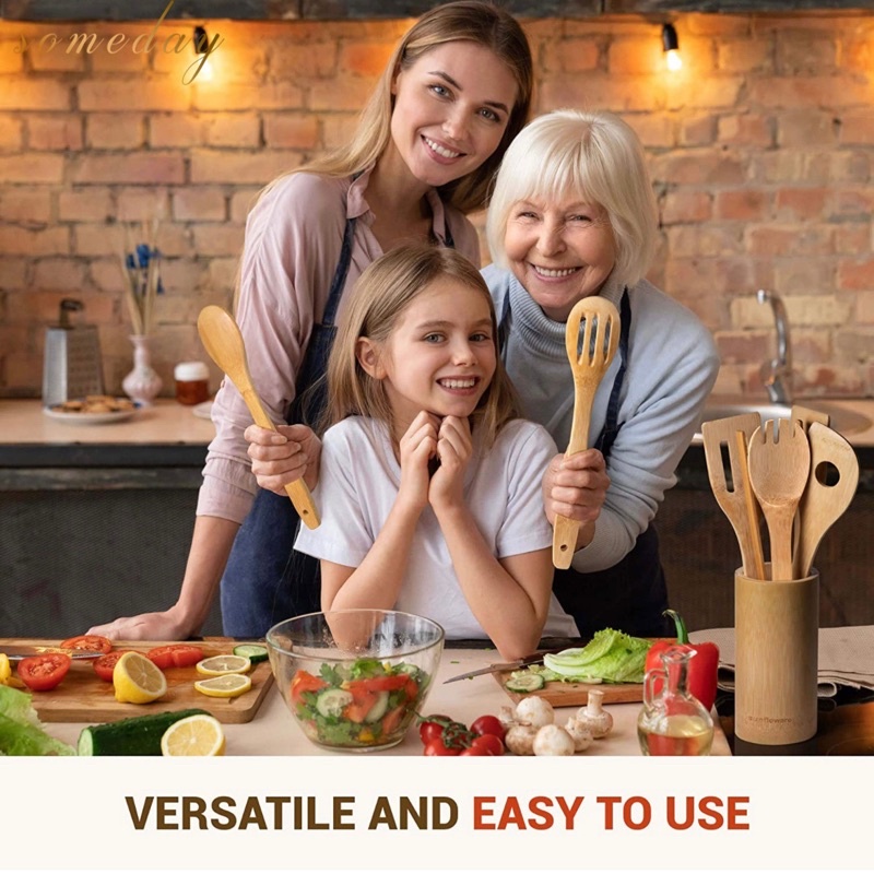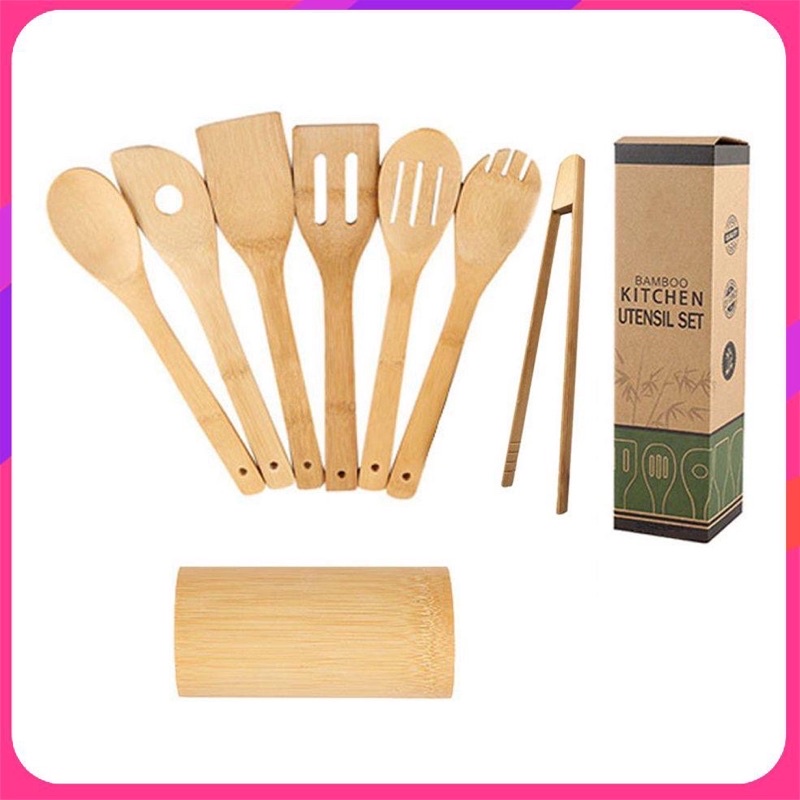 8 in 1 Eco Friendly-Bamboo Kitchen Utensil Set Tool Kitchenware (Bamboo Utensil Holder Included)