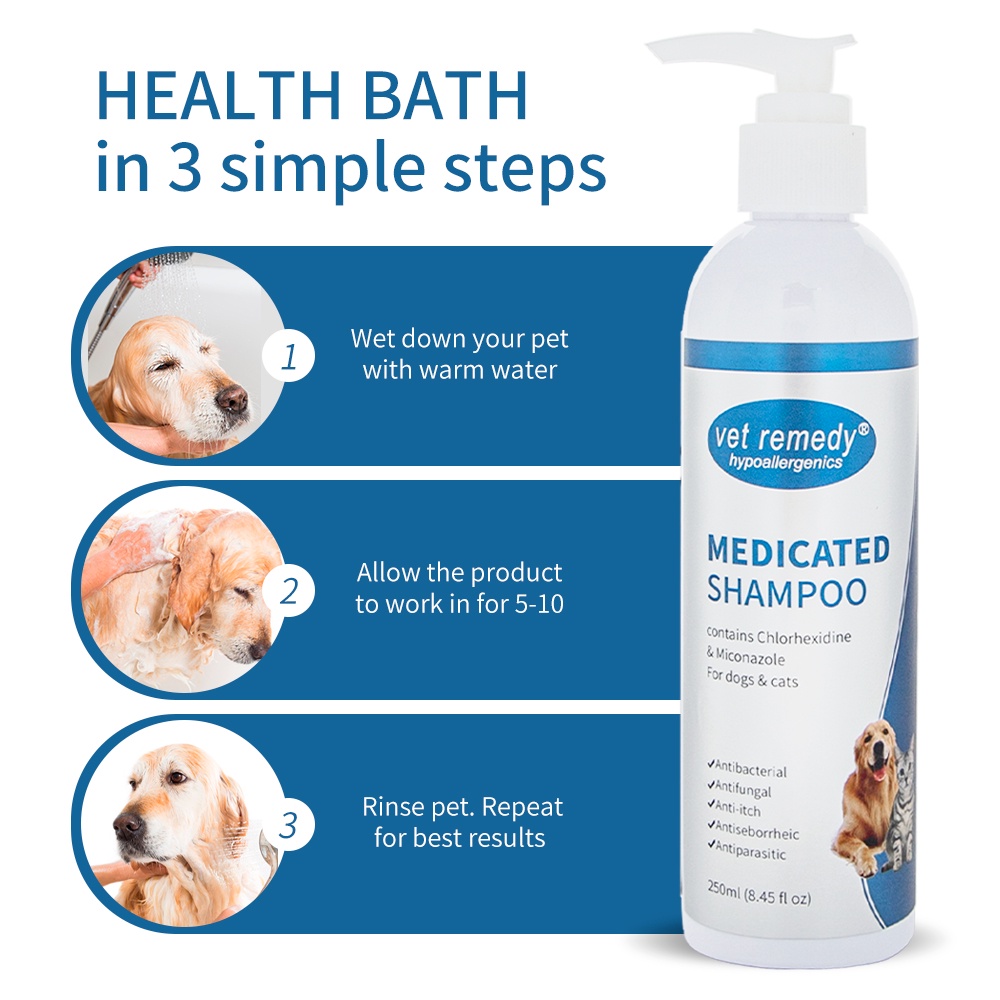 Vet Remedy Medicated Shampoo 250ml for Dogs and Cats (prevents itch, wound, tick and flea)