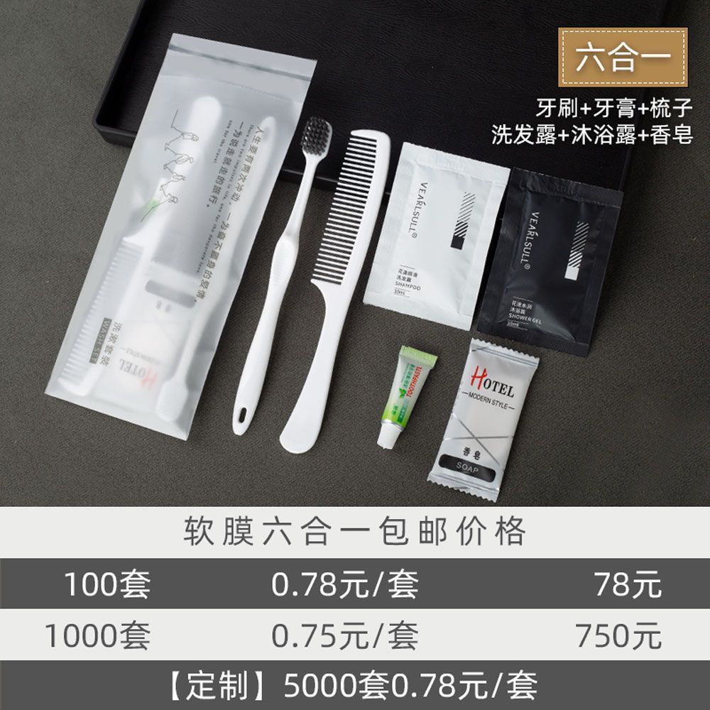 Wholesale hotel six-in-one soft-bristle toiletry set, guest room supplies, disposable toothbrush, toothpaste, and toothbrush accessories DYYK