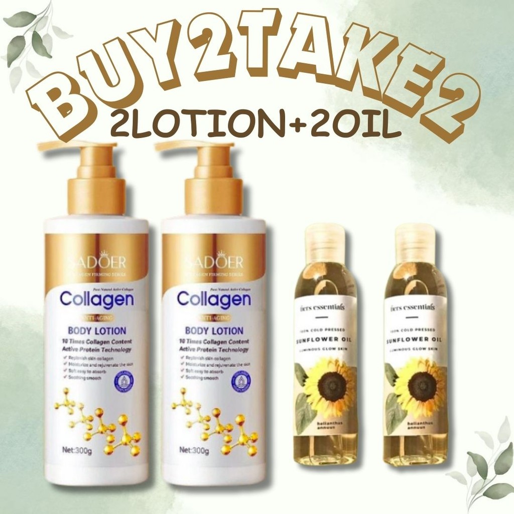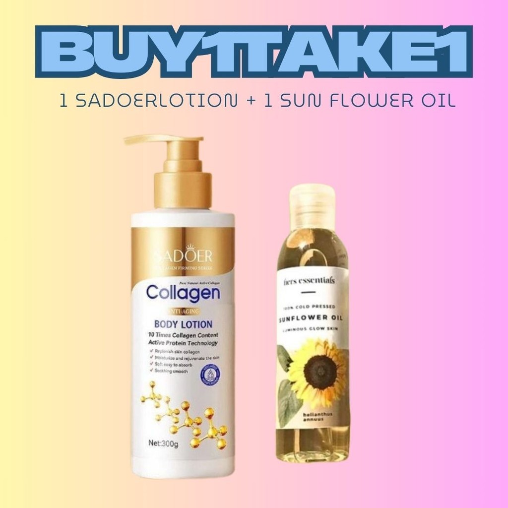 BUY 2 TAKE 2 [ 2PCS SUN FLOWER OIL 100ML + 2 SADOER BODY LOTION WHITENING AND MOISTIRIZING SKIN ]
