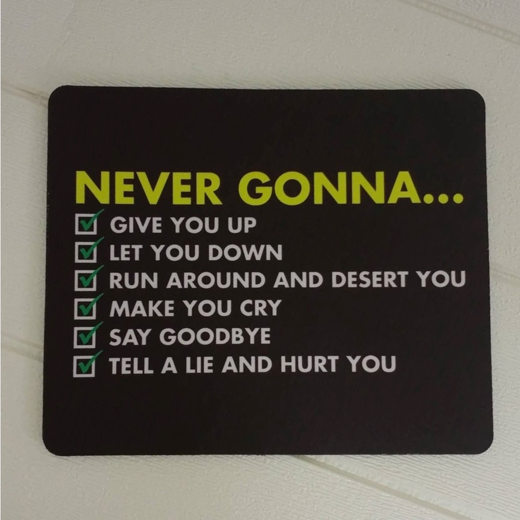 Never Gonna Give You Up Checklist Rick Astley Rickroll Rick Roll Rickrolled Funny Rubber Mouse Pad