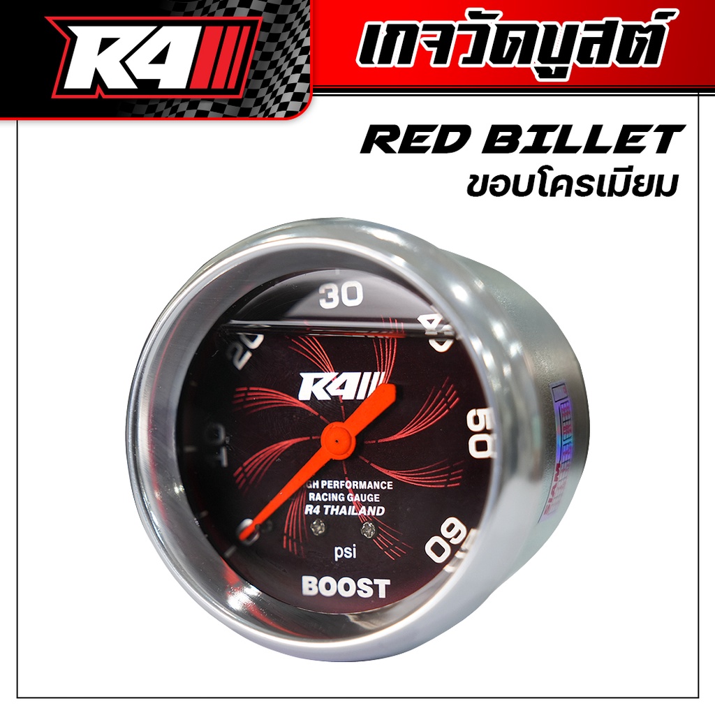 New! Boost Gauge R4 Red Billet 60/100 Pounds Chrome Edge Black Oil Face Leakage Needle 3