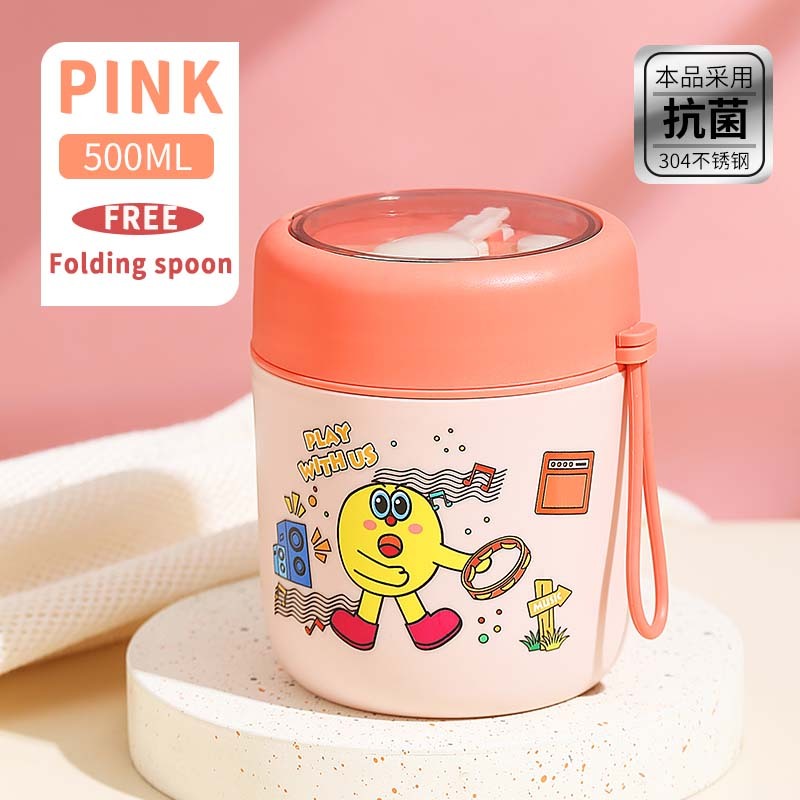 New! 500ML Mini Soup Cup Kid Food Container 304 Stainless Steel Thermal Lunch Box Jar With Spoon Insulated YM34