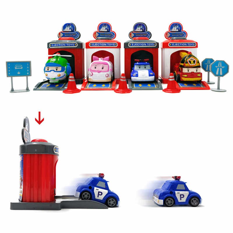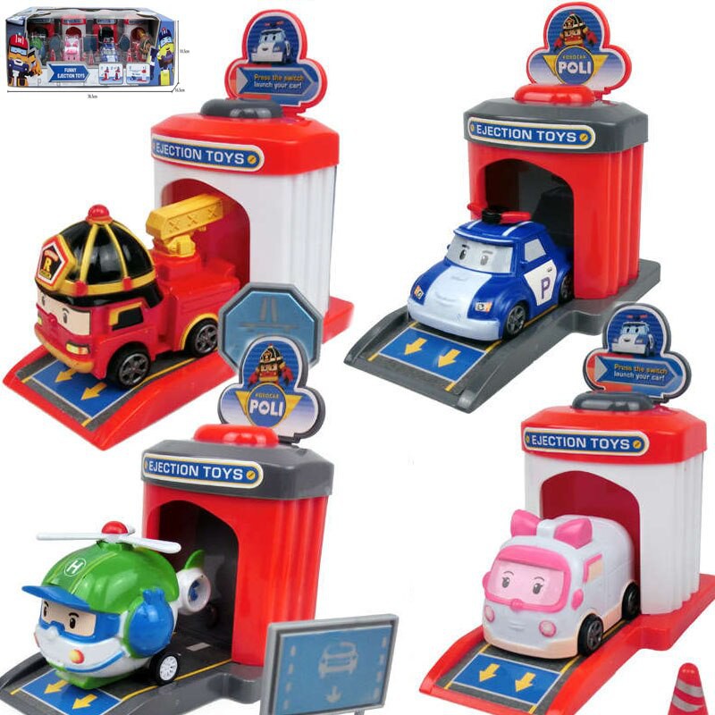 New! Robocar Poli 4 in 1 Station Set with Ejectors Korean Toys Cars Roi Amber Helly Anime Kids