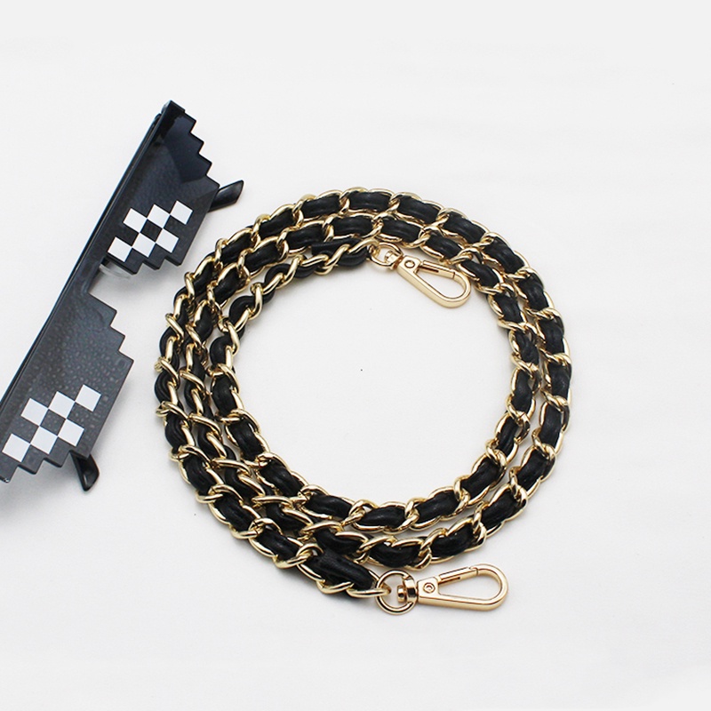 New 120CM Metal + Leather Bag Straps Messenger Bag Chain Strap Fashion Shoulder Bag Belt Replacement
