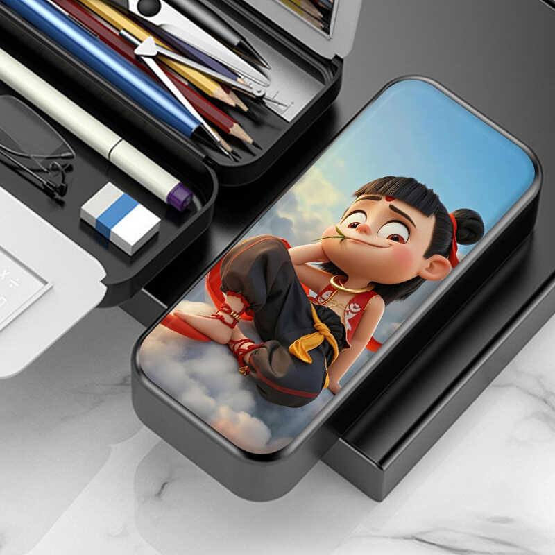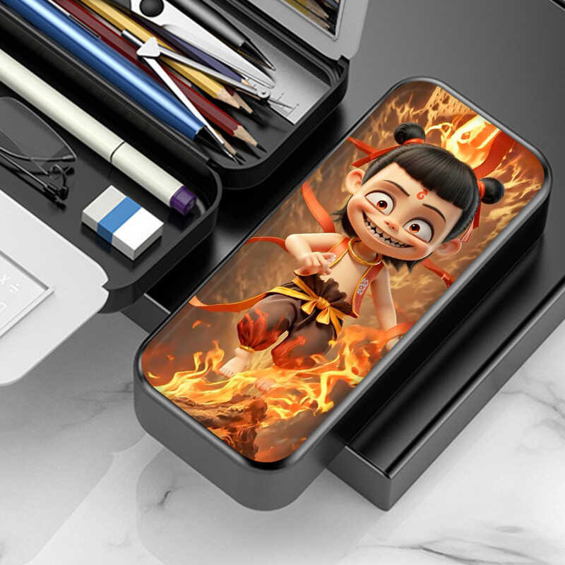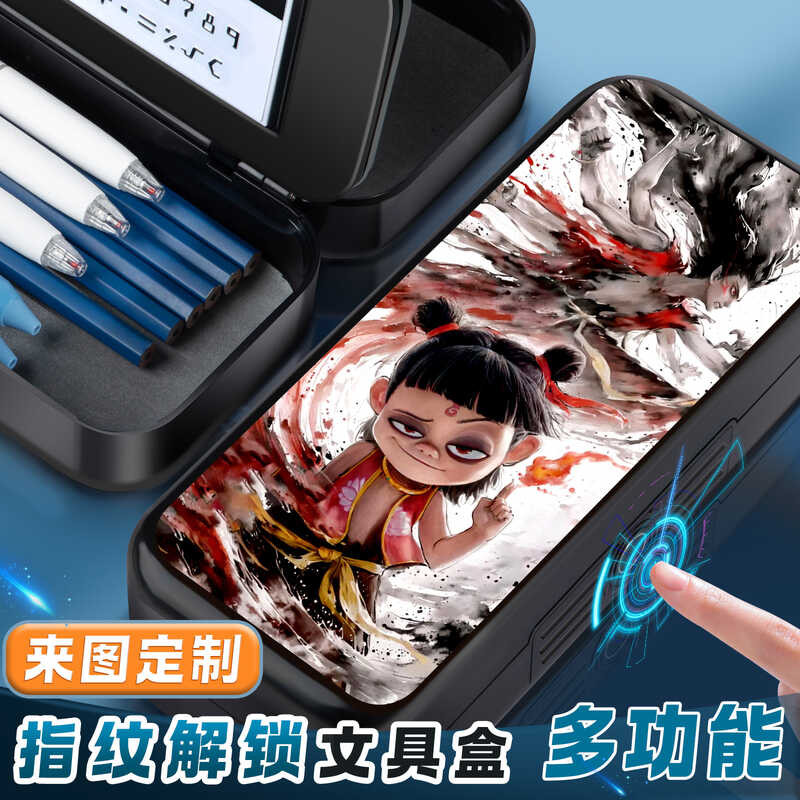 New 2025 Nezha Pencil Case Fingerprint Stationery Box For Boys Children Elementary School Students