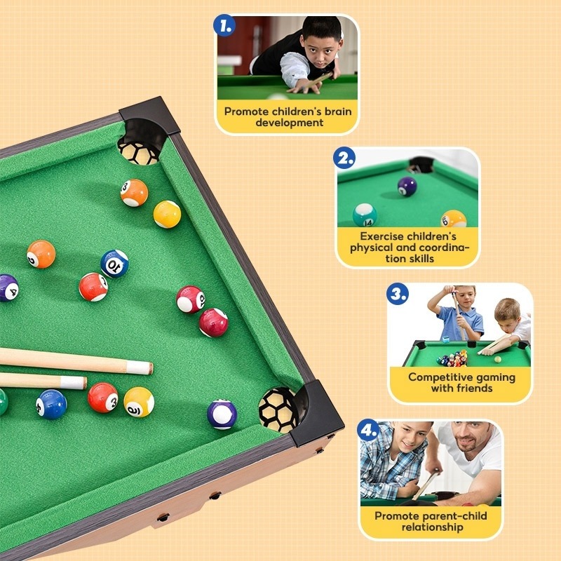 New 36x20 Inches Mini Billiard Table for Kids Wooden Tabletop Pool Table Set Snooker Mini Pool