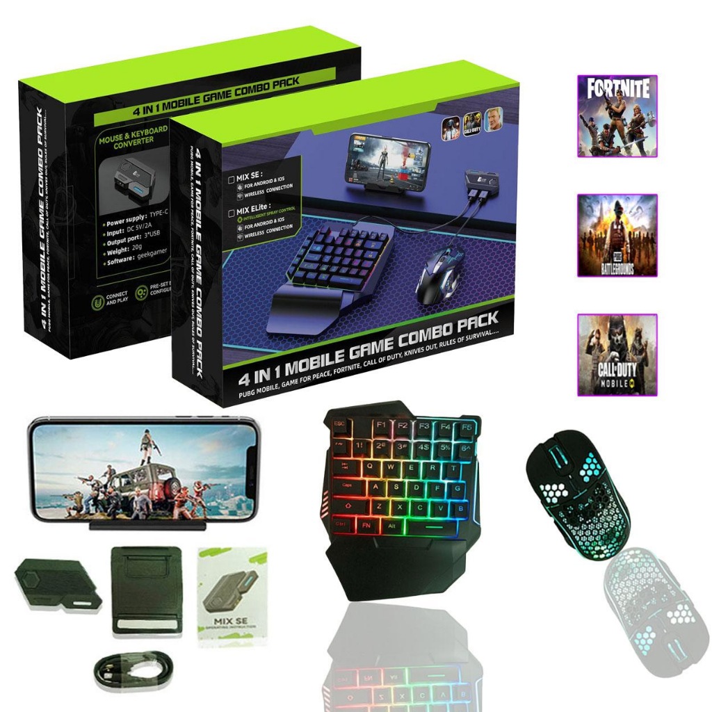 New 4 in 1 Bluetooth Gaming Keyboard Mouse Converter Combo Support For Android & IOS PC PUBG Mobile