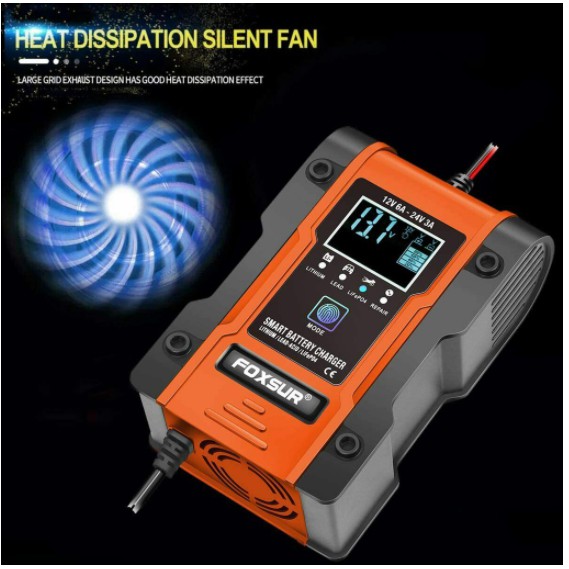 New 7-stage Automatic Charging Smart Car Battery Charger LCD Automatic Pulse Repair Motorcycle 12/24