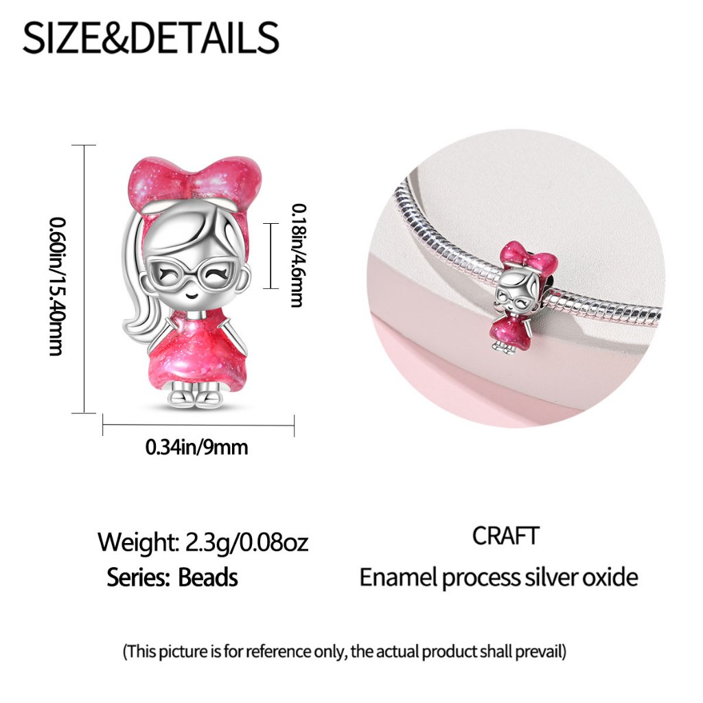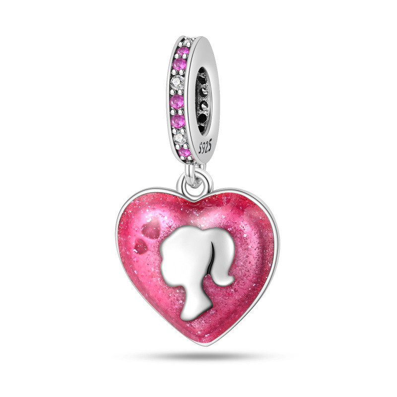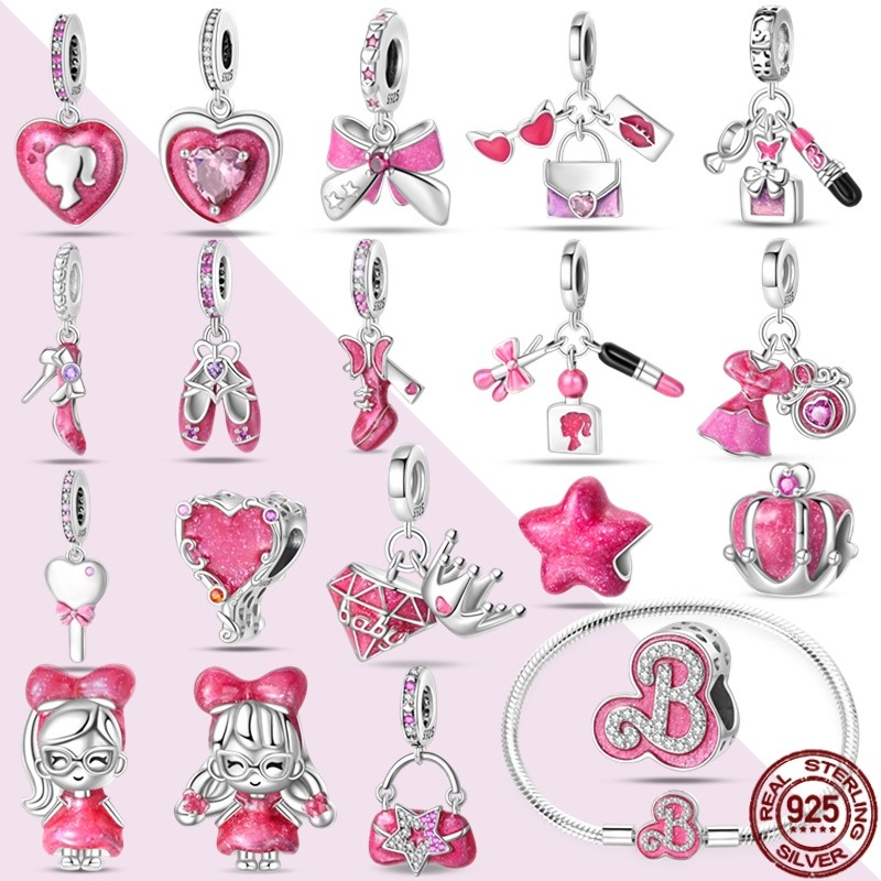 New 925 Sterling Silver Beads Barbie Pink Collection - Barbie ponytail girls suitable for original Pandora women's bracelets, DIY jewelry gift making
