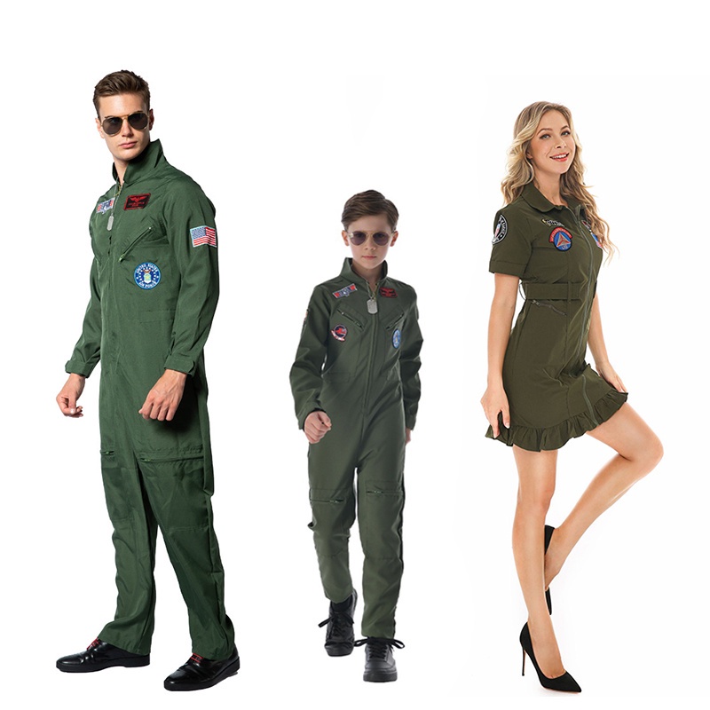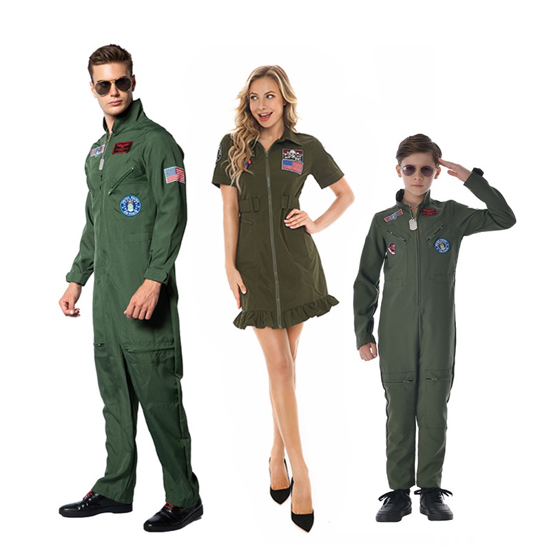 New Adult Kid Army Green American Military Pilot Uniform Women Men NASA Spacesuit Astronaut Cosplay Halloween Couples Family Costume