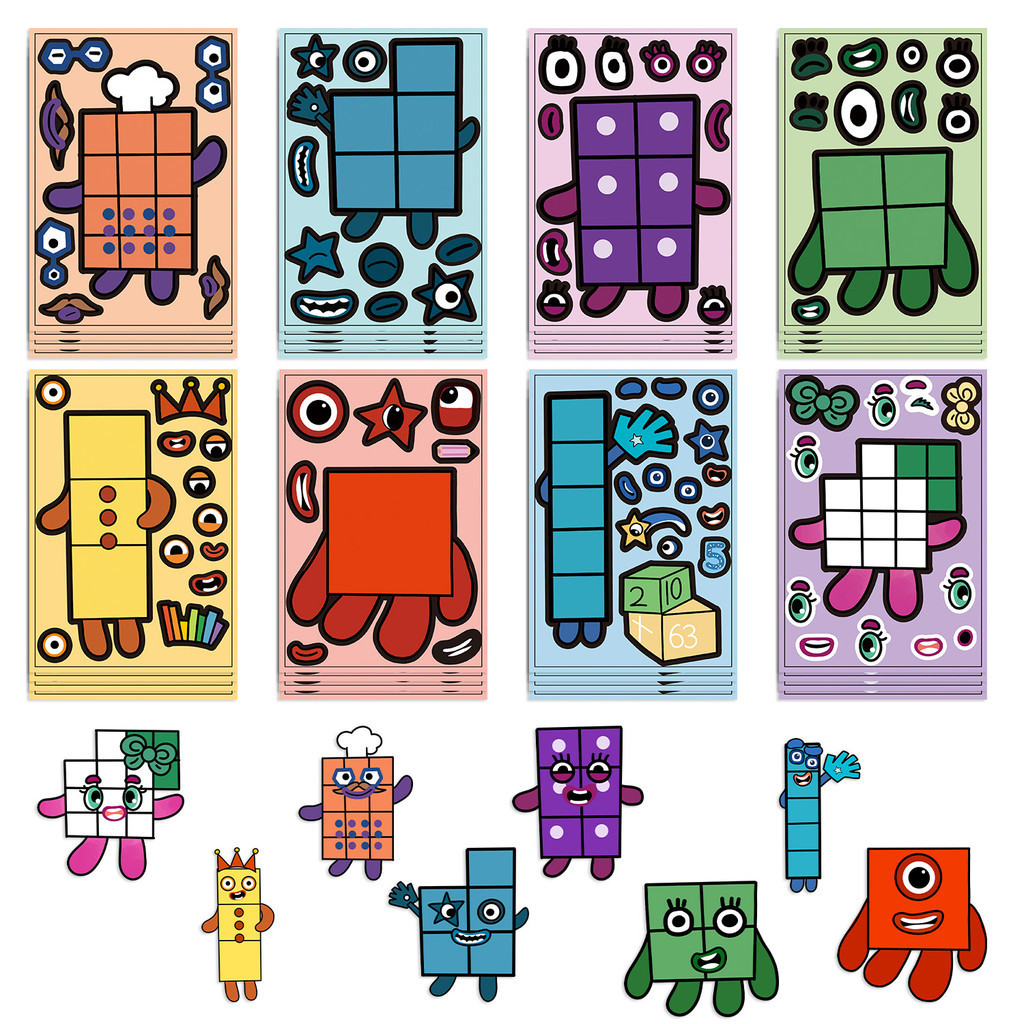New Animation Numberblocks Theme Toy Puzzle Sticker Children's DIY Handicraft Waterproof Repetitive Sticker