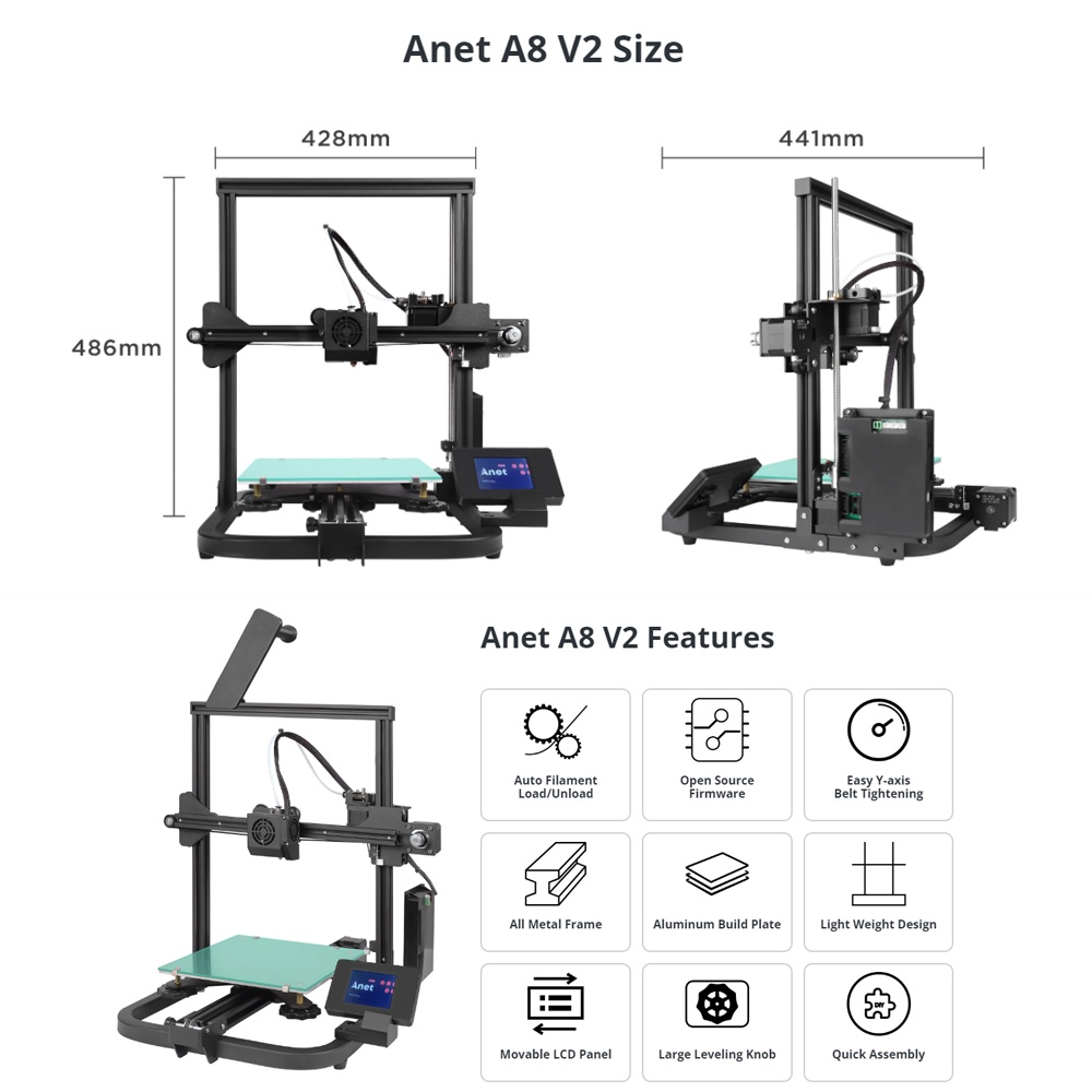 New Arrival Anet A8 V2 Integrated All Metal Frame FDM 3D Printer DIY Kit Easy Assembly Impresora 3D