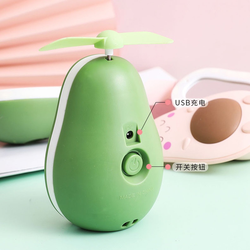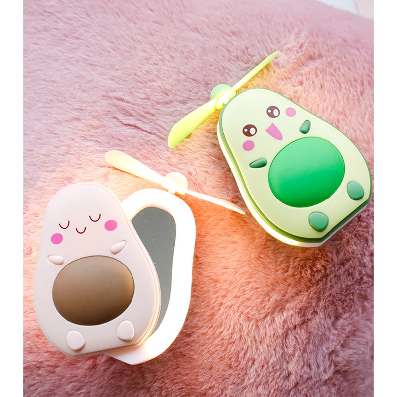 New Avocado USB Charging Fan with Mirror Outdoor Handheld Student Mini Portable Fan