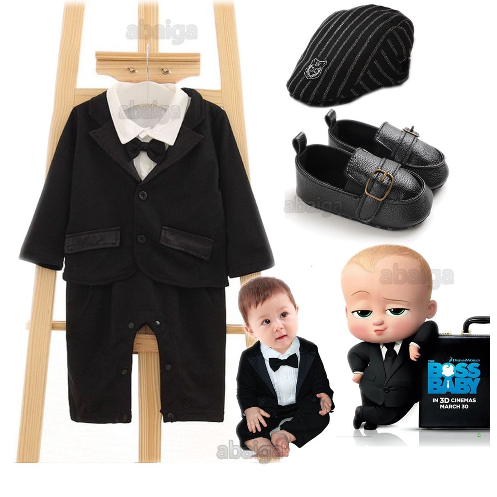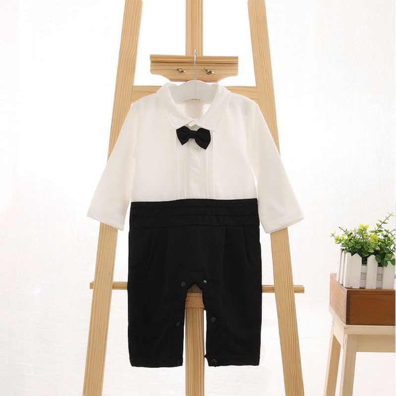 New Born Baby Clothes Set Boss Baby Costume Long Sleeve Jumpsuit Black Coat Boy Tuxedo Suit Bow Tie Birthday Outfit Wedding Party 3-18 Month