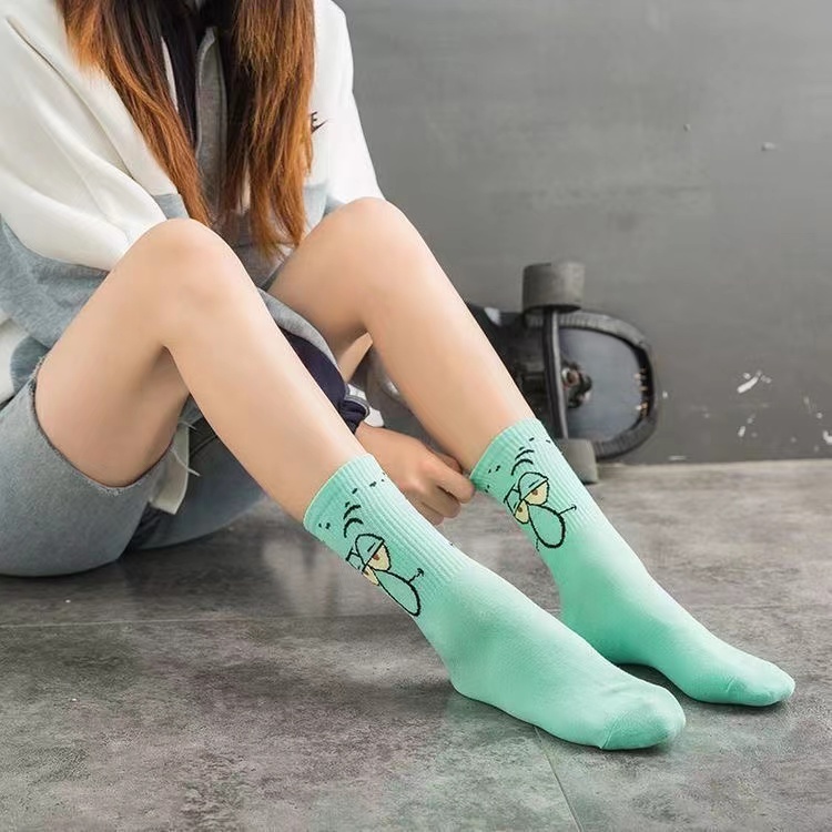 New Cartoon Cute SpongeBob Socks Harajuku Style Tube Socks Fashion Trend Middle Tube Socks Cotton College Trend Brand Socks