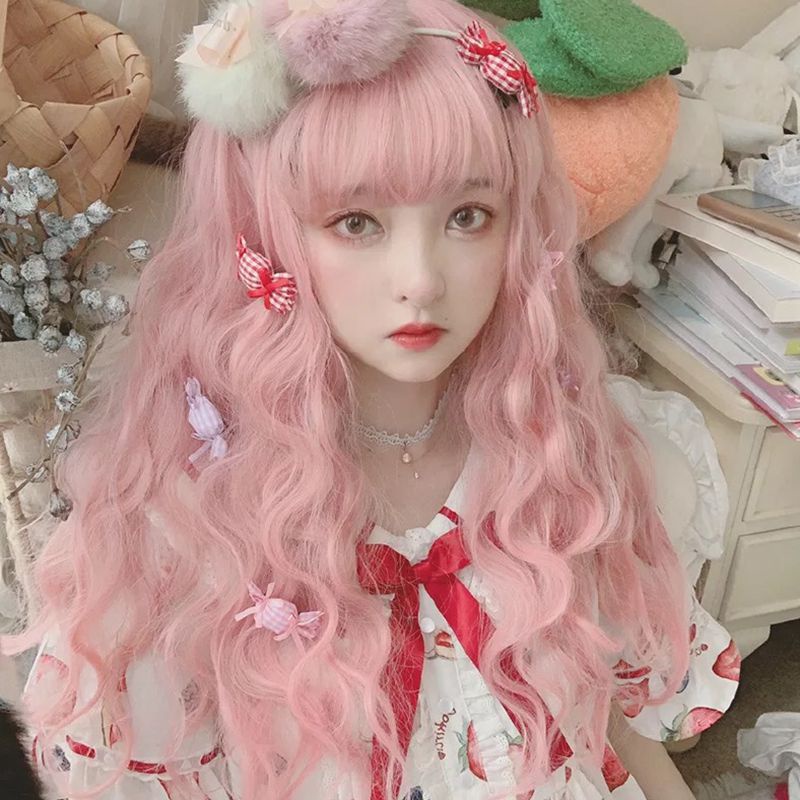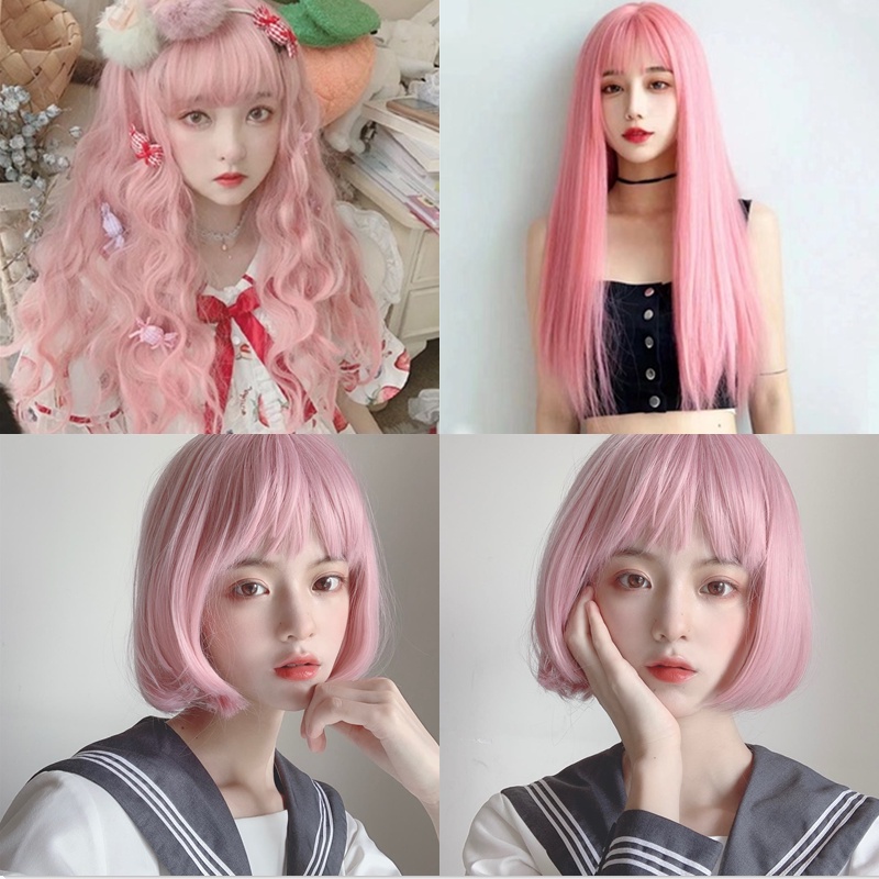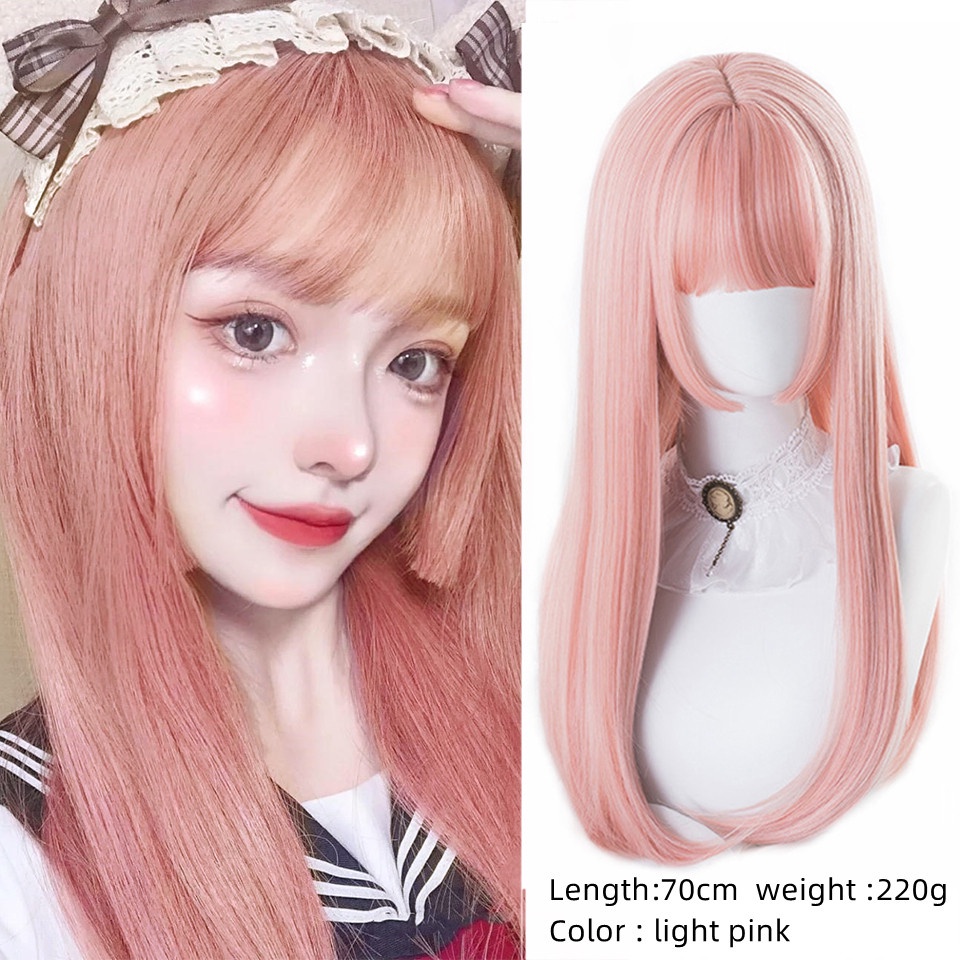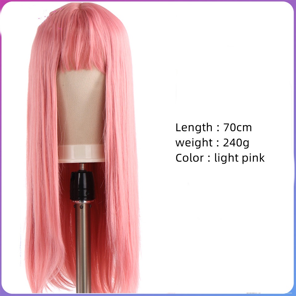 New Cosplay Wig With Bangs Synthetic Hair Heat-Resistant Light Pink Wig For Women Daily Cosplay Party
