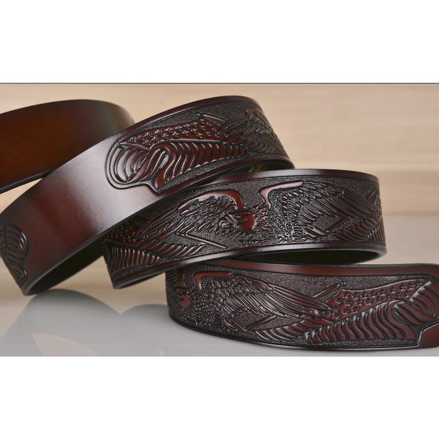 New Cowhide Men's Belt Eagle Pattern Embossed Retro Eagle Head Automatic Buckle Casual Leather Belt Men's Personality Trend Belt